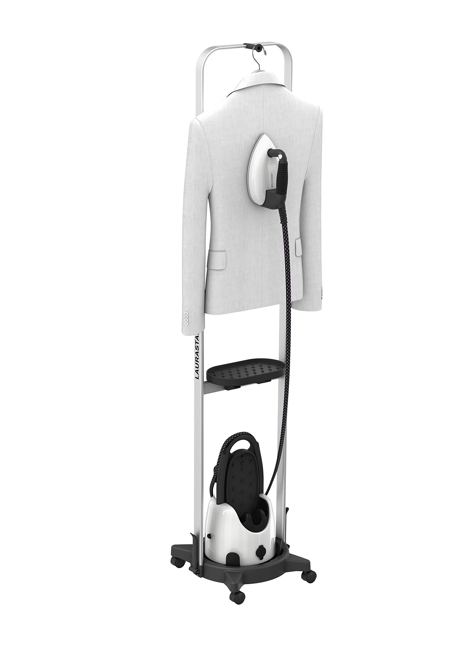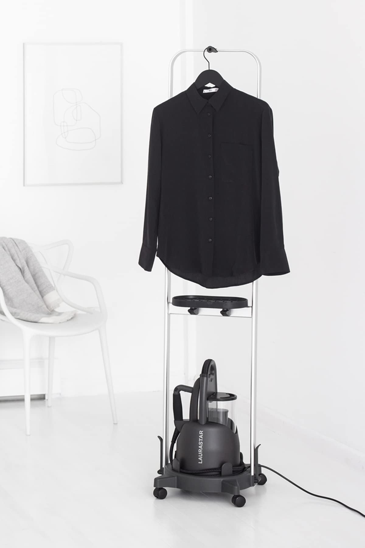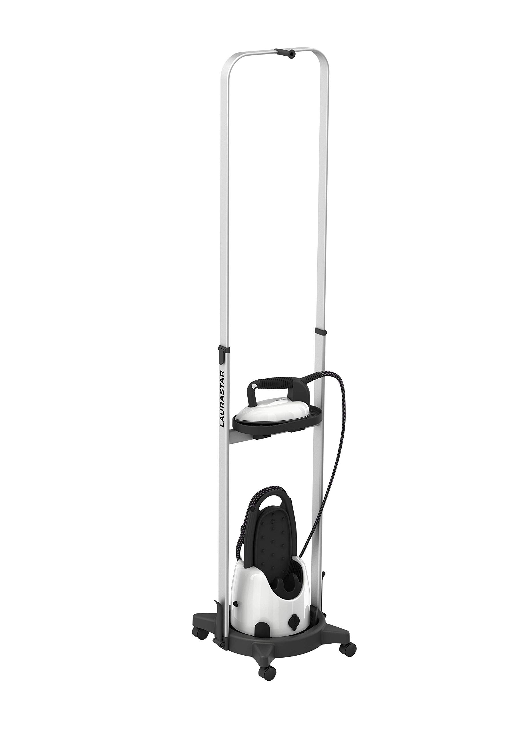 Laurastar Steam Cart for Lift in AluminumOptimal stabilityElegant design with bars in anodized aluminiumHeight adjustable according to the user’s height and/or the wrinkled clothing you want to smooth outEasy to move around with its 4 wheelsFoldable for space-saving storage