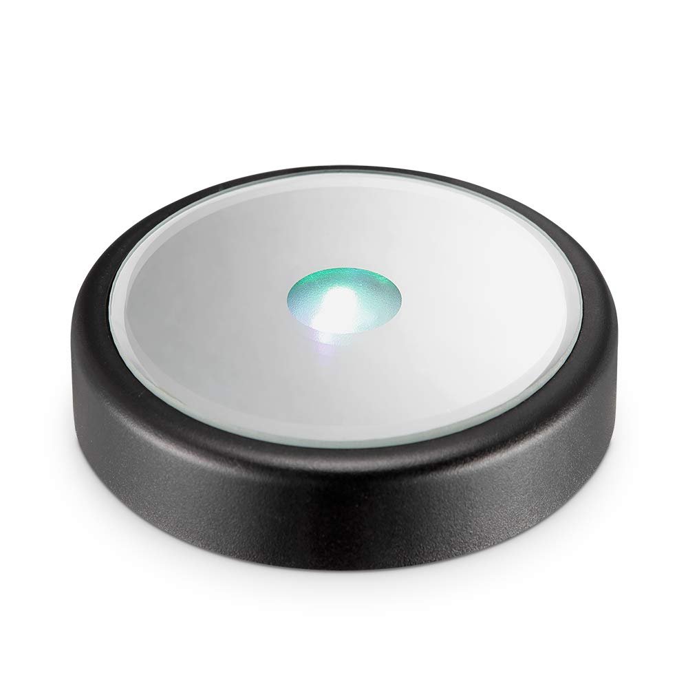 Add a new dimension of beauty to your art glass pieces with this LED light base. Sparkling bubbles and gossamer shapes in the glass will capture and reflect the light, creating a marvelous display of color. Multicolor (including white - change with switch.) Transformer is included; 3 AAA batteries not included.Multicolor (including white.)Transformer is included; 3 AAA batteries not included.1"H 4" DiameterSwitch from colored to white light