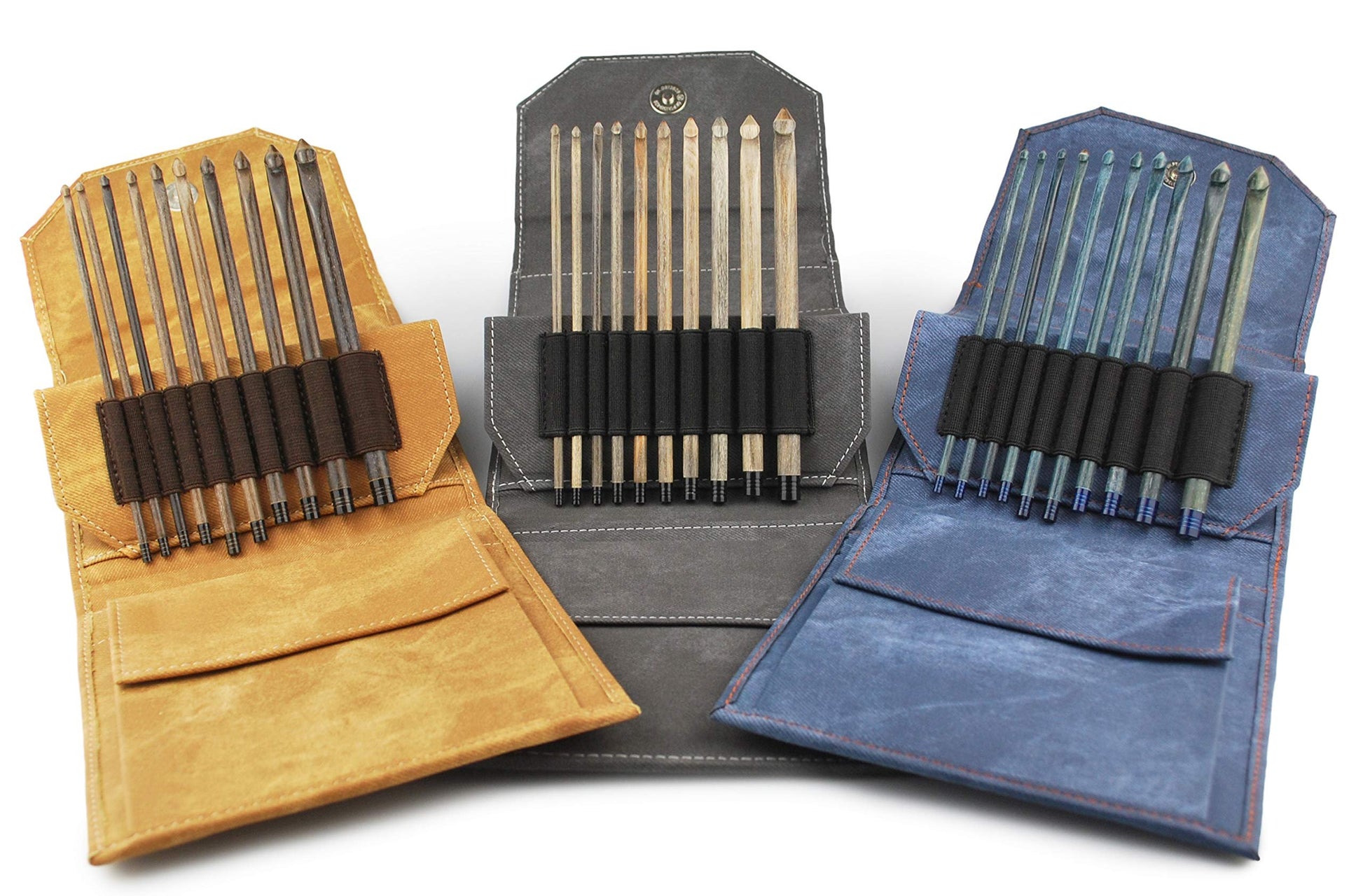 Named after the Norwegian word for happiness, Lykke Crafts combine high quality materials and thoughtful design to produce beautiful, durable, happy-making knitting needles. Our beautiful needles and hooks are handcrafted and assembled. Our production routines do not rely on mechanized automation. Instead, our products benefit from the skilled and graceful touch of fine local craftspeople. And as global demand is increasing for our products, this community of skilled workers is growing too, expanding our output capacity. We value the opportunity to employ this growing community of skilled craftspeople and happily embrace the natural, human pace of production. As customers of Lykke Crafts, we thank you too, for your patience and support.Lykke Driftwood 6-inch Crochet Hook SetThis 10 piece set includes 6" hooks Sizes E-4 / 3.5mm, F-5 / 3.75mm, G-6 / 4mm, 7 / 4.5mm, H-8 / 5mm, J-10 / 6mm, K-10.5 / 6.5mm, L-11 / 8mm, & M-13 / 9mmChoose from Umber or Indigo Denim cases