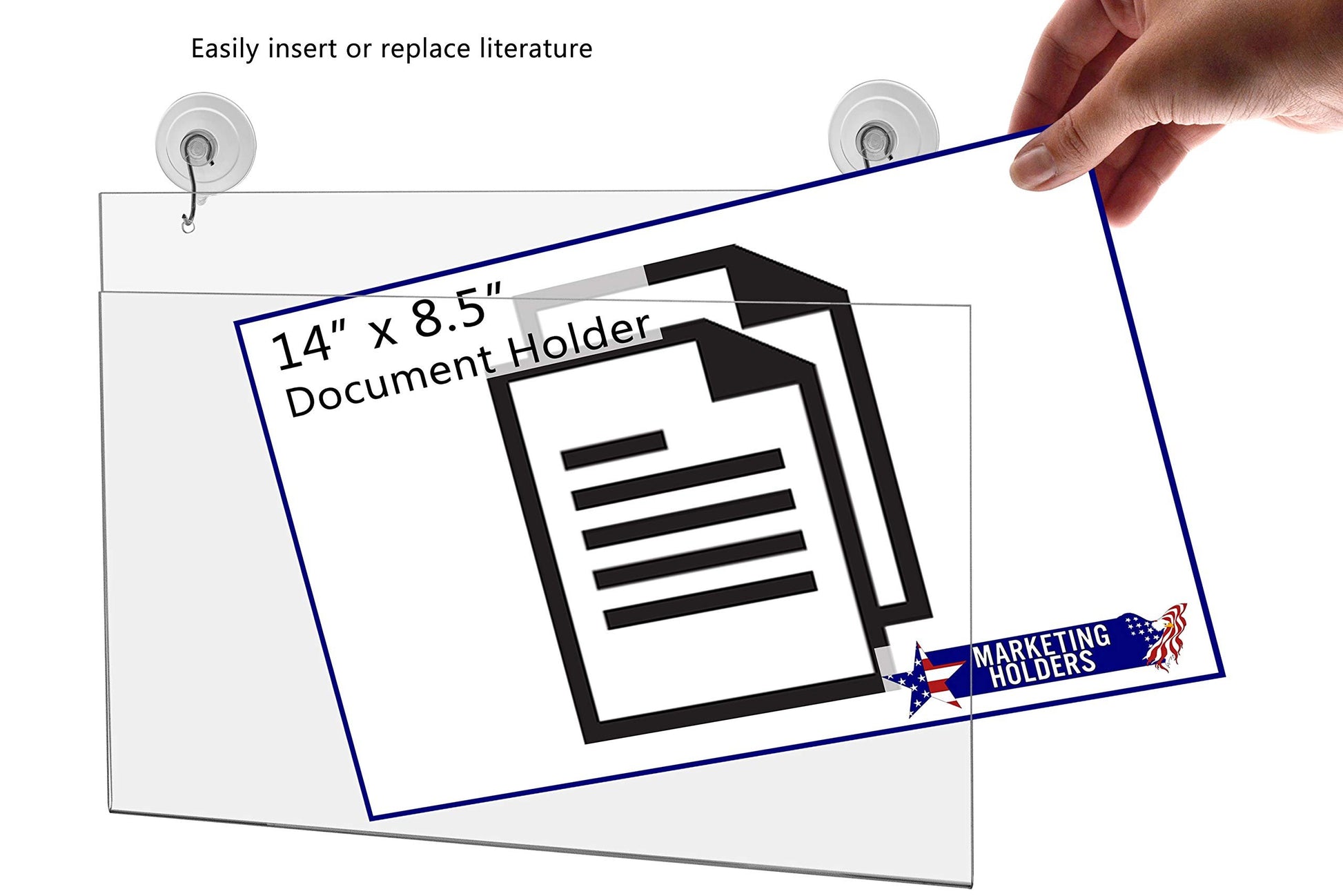 Marketing Holders 2 Pack Suction Cup Hooks Sign Holder 14” x 8.5" Document Holder Double Sided Window Mount Menus Daily Specials and Events Sign Sleeve for Restaurants and Cafes