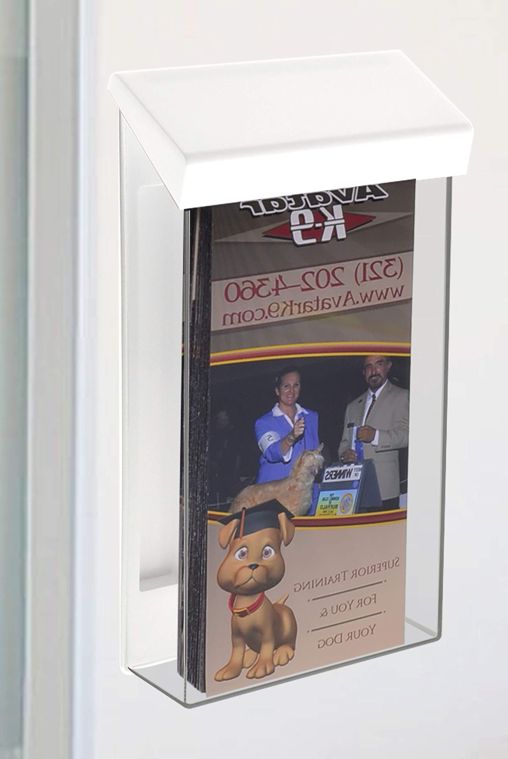 Marketing Holders Outdoor Brochure Holder Holds 4" x 9" Trifolds Wall Mount Clear with White Lid Acrylic Rack Cards Box with Lid Includes Take One Sticker Adhesive Strips Advertising Display