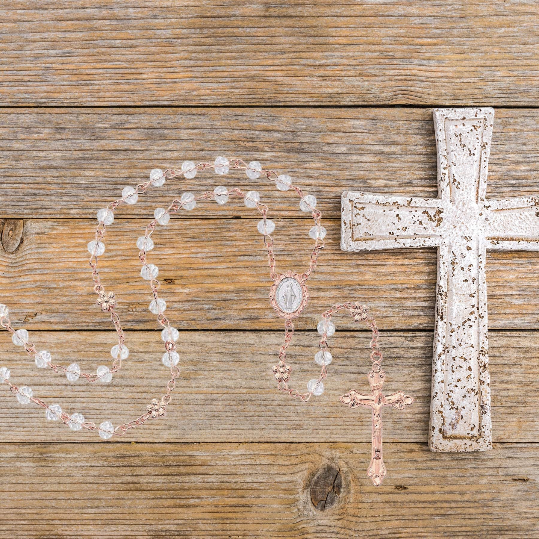 McVan Rose Gold Toned Catholic Rosary with Miraculous Medal Centerpiece, Religious Gift for Girls