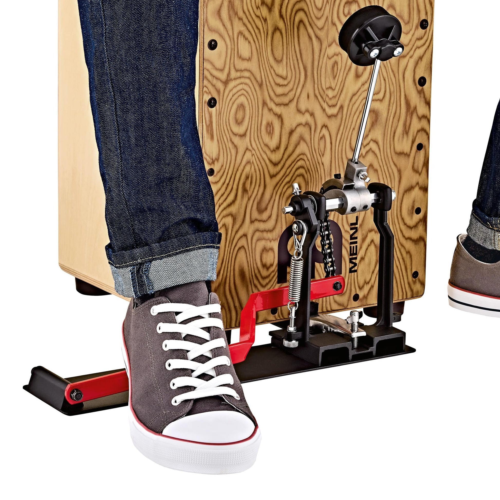 Meinl Percussion Direct Drive Heel Activated Pedal, Adjustable Spring Tension-Mount Fits Cajons up to 12 1/4" Depth, 2-Year Warranty (TMSTCP-2)Heel activated: for percussionists who prefer to play their Cajon pedal with their heel, This pedal can be played with either a heel or toe motionFor right or left footed playing: with a few easy adjustments, The pedal can be modified for right or left footed playersAdjustable cam and springs: The adjustable cam and springs allow you to fine tune the action of your pedal so that you get the right speed and power for your tasteSoft foam beater: Mein Cajon pedals are equipped with a special soft foam beater that effectively pulls out round and thump bass tones from your CajonReliable Spurs and mount: a Cradle-like mount will hold your Cajon in place while threaded Spurs dig in to prevent slippage (fits up to 12 1/4" Depth)