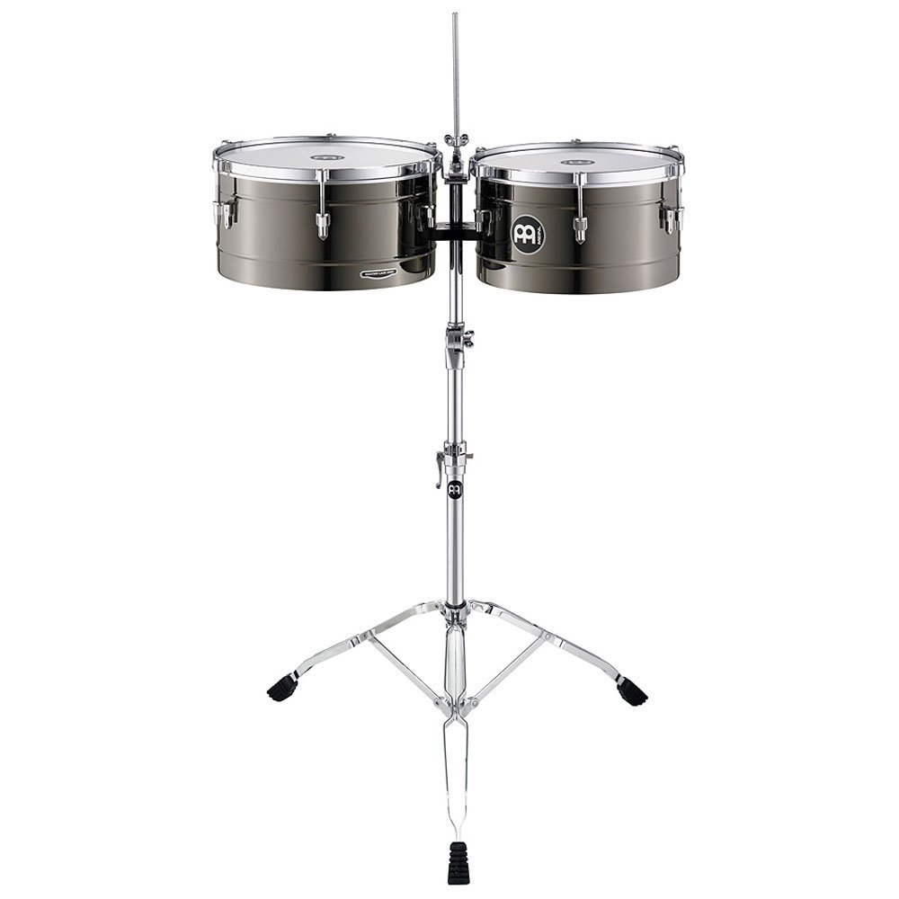 Meinl Percussion MT1415CH Marathon Series Chrome Finish Steel Timbales, 14-Inch and 15-Inch with Standadjustable cowbell holdertilting dble braced tripod stndheavy duty style bracketstwo worked in flangeschrome finishHeavy duty style bracketsTwo worked in fl angles