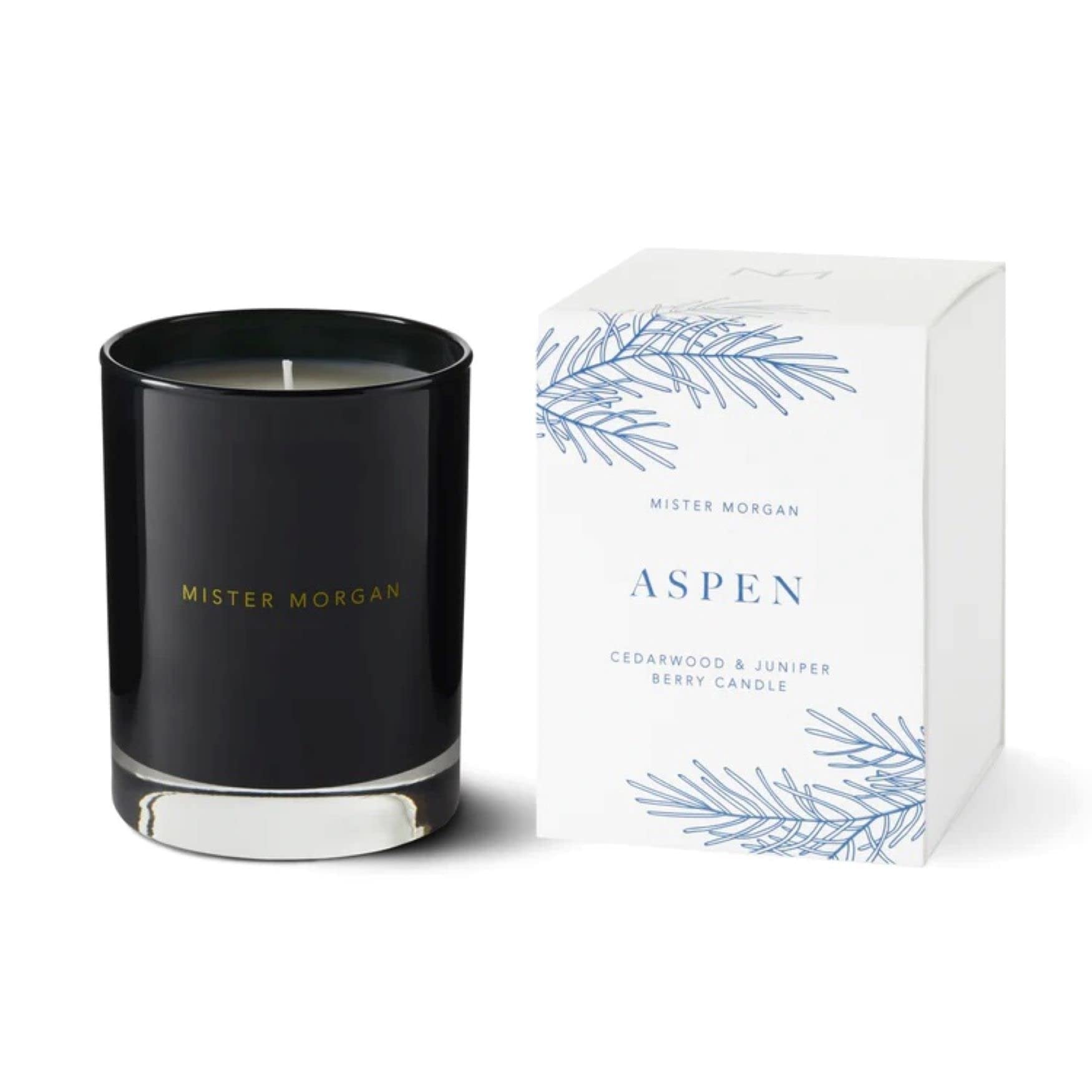 Mister Morgan's Aspen candle evokes the tranquility and adventure of this lush mountain town. Woodland leaves and sun-kissed bluebells blend with earthy cedarwood and aromatic pine to mimic the scent of a fresh summer breeze floating over running creeks and shaded trails of Aspen.