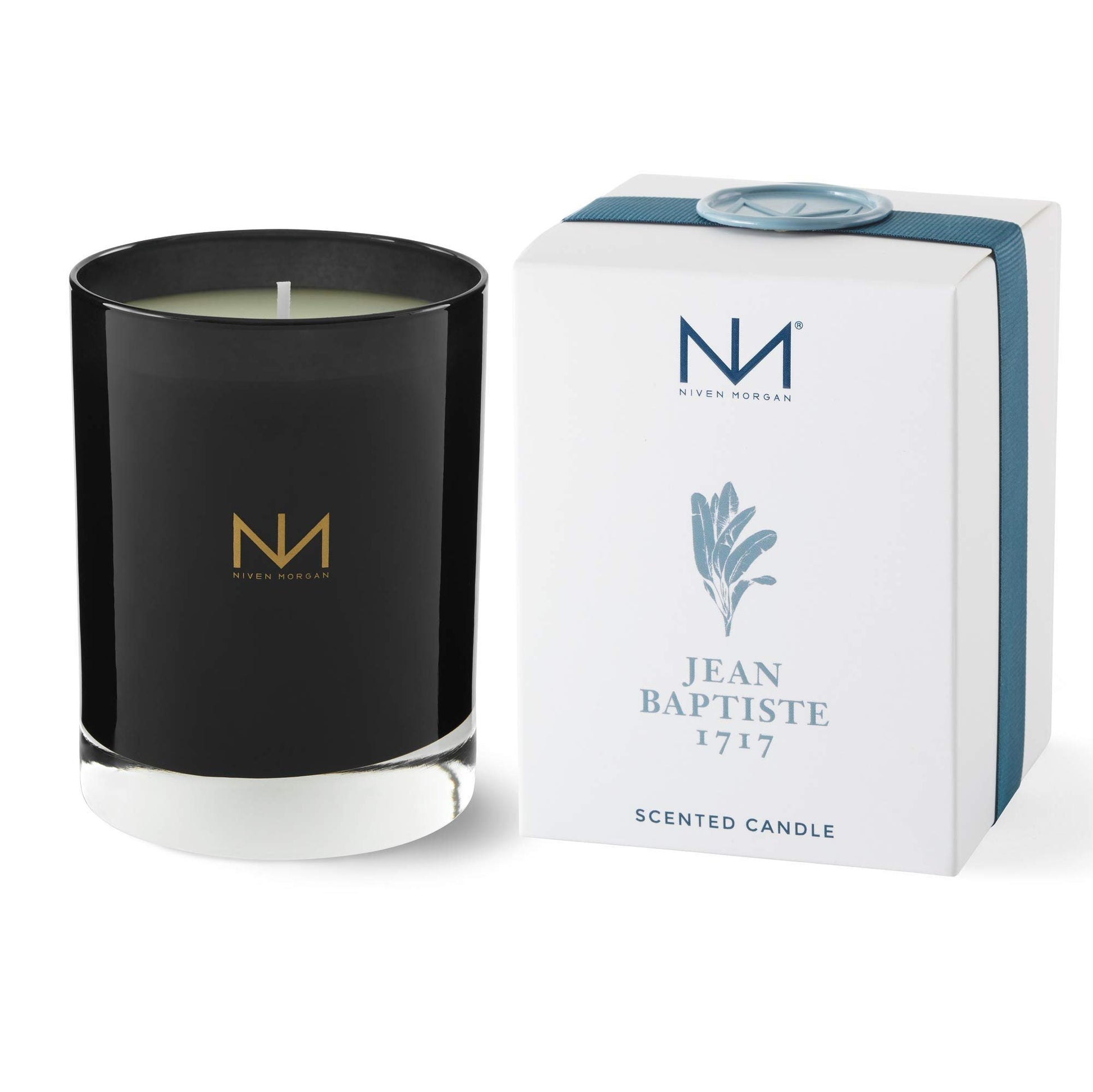 Niven Morgan Jean Baptiste 1717 CandleA young but sophisticated fragrance, Jean Baptiste 1717 evokes the seductive soul of New Orleans:oak lined boulevards, jasmined air, distant song, sweet times, love lost and found.The scent: Water hyacinth, jasmine and tuberose floating through a sensual aura:wild rose and princess lily with subtle traces of caramel and creamy vanilla, and base notes of rich woods and warm patchouli.