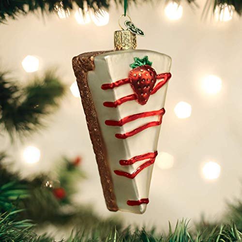 Old World Christmas is the premier brand of Christmas ornaments in the country. The founders, Tim and Beth Merck, a couple who shared a special love for Christmas, are credited with revitalizing the art of mouth-blown fine glass ornaments as a result of their reintroducing figurative designs to the United States in 1979. Add some charm to your holiday tree with this charming ornament; Features tasty red strawberry iced cheesecake. Decorative ornament is made of a durable glass material; Spot clean as needed. Hanging bauble measures approximately 1.75 x 2 x 4 inches; Hangs from a durable string for easy application. Perfect addition to your Christmas tree or hanging from an ornament stand. Contained in protective packaging; Ready for easy gifting.HAND-CRAFTED: Our Christmas Ornaments have been hand-crafted using age-old traditions that originated in the 1800s to bring you the highest quality ornaments for your treeOur Cheesecake Glass Ornament will add a beautiful,elegant touch to any Christmas tree or to accent the decorations within your homeGIFT: The Cheesecake ornament is a perfect gift for a hostess, baker or friendly neighborQUALITY: These Christmas tree ornaments are hand-painted and mouth-blown to provide you with a beautifully crafted and high-quality ornamentFESTIVE: Our hand crafted glass blown ornaments give your tree the holiday sparkle it needs