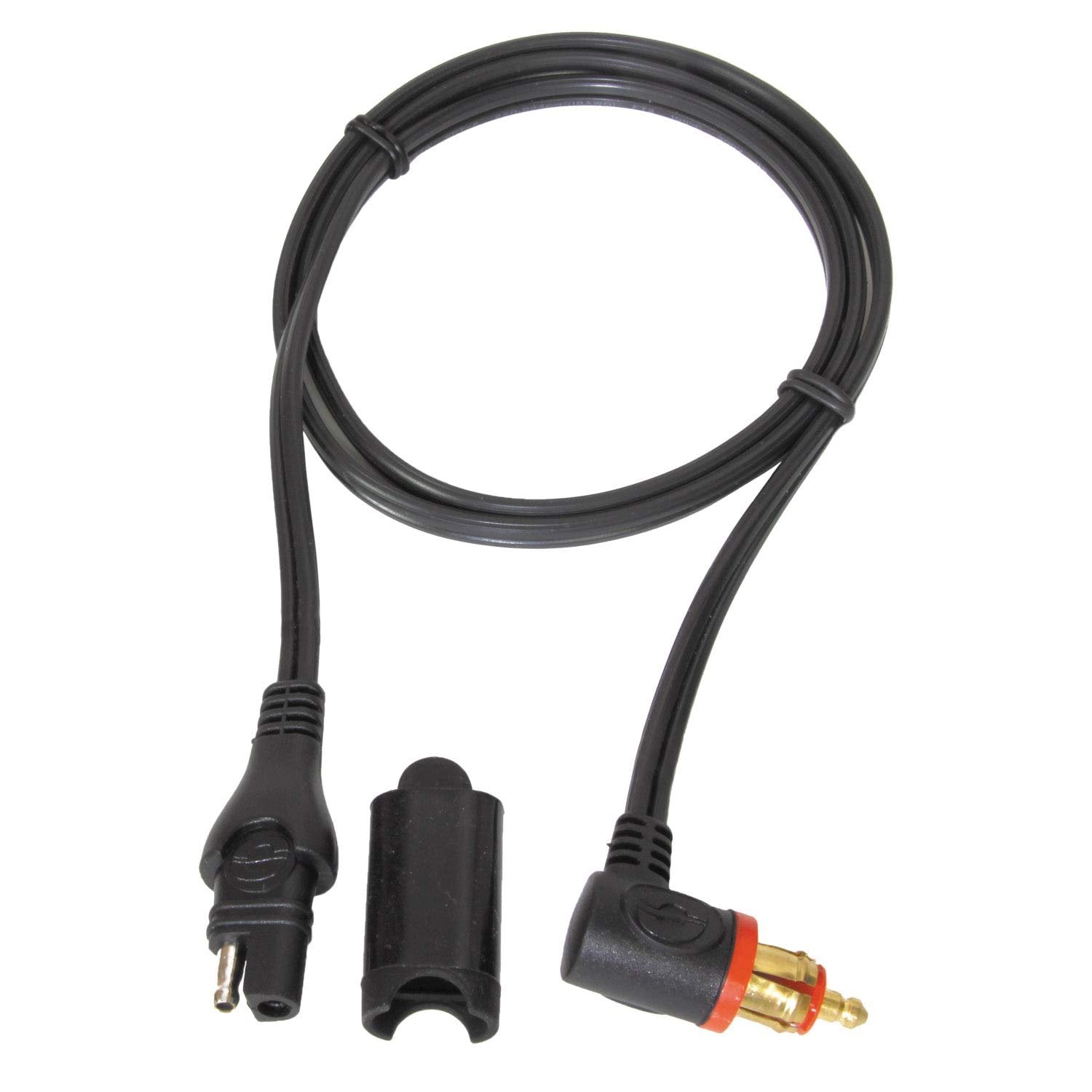 Optimate cable O-29, Adapter-extender, SAE to BIKE 90° plugConnect your on vehicle electronics or your tankbag fitted with O-30 adapter, fits OEM power socket on BMW, Triumph, Victory or Ducati Multistrada motorcycles.Model O-29 specs: L= 40″/100cm. Sealed low profile DIN (12mm diameter) connector; 18AWG cable-40°C/-40°F very low temperature use; cable remains flexible at ‘below freezing’ temperatures.15A fuse; cable max. rating: 5 Amp.Includes in-line rubber seal for OptiMATE heavy duty SAE connector.