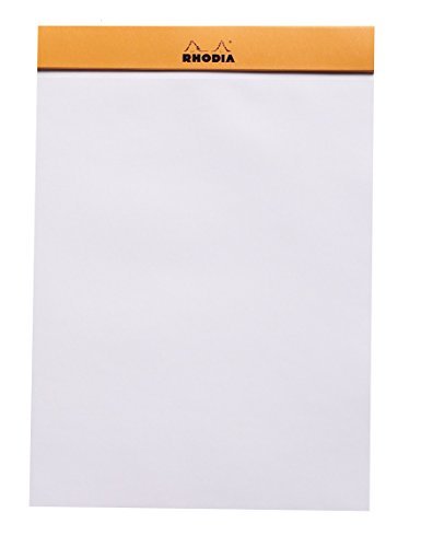 Rhodia Notepad, No16 A5, Plain Blank - OrangeA5 in sizePaper within the notepad is made from Clairefontaine 80 g Superfine Vellum80 detachable micro-perforated sheetsCardboard back and the ruling is in greyPlain paper