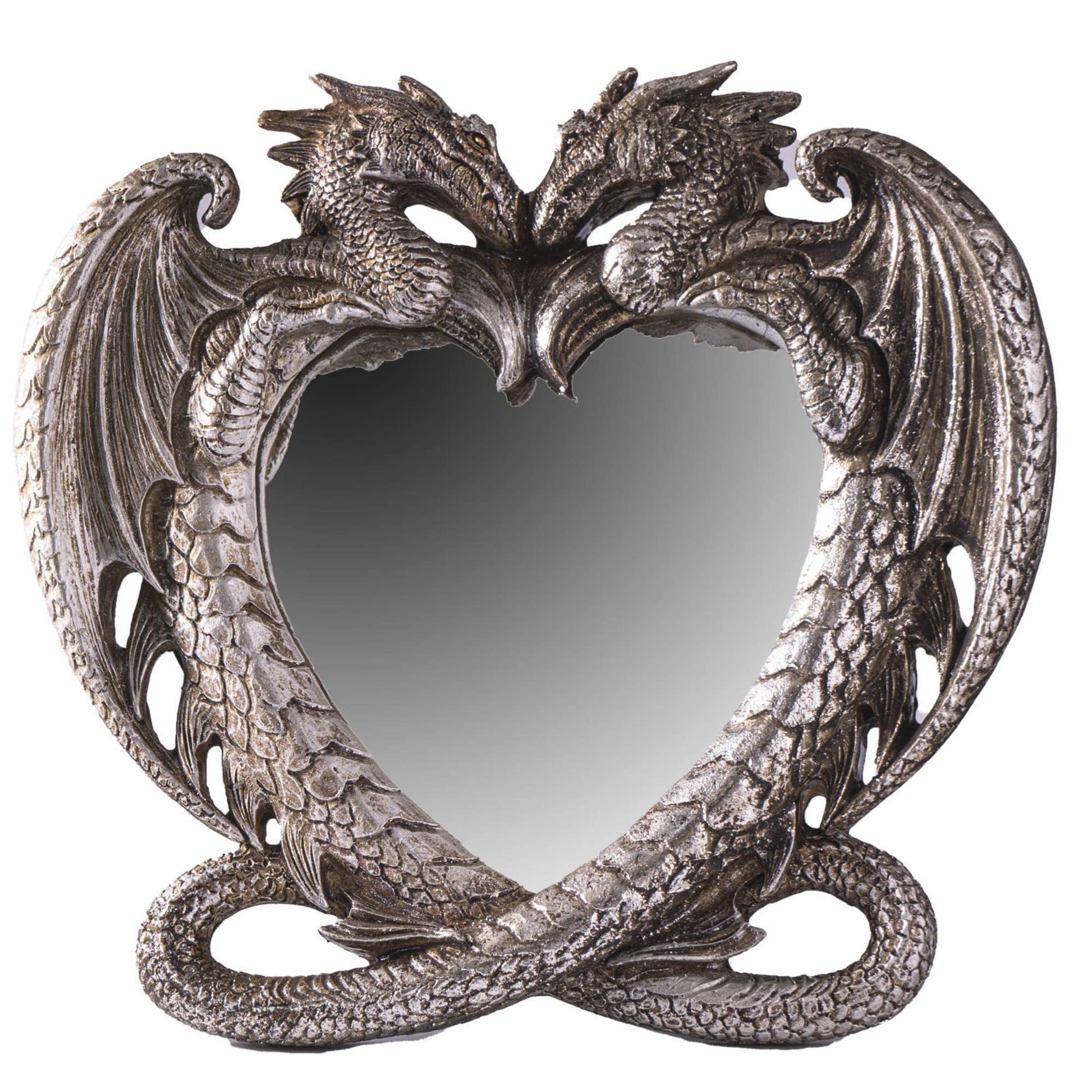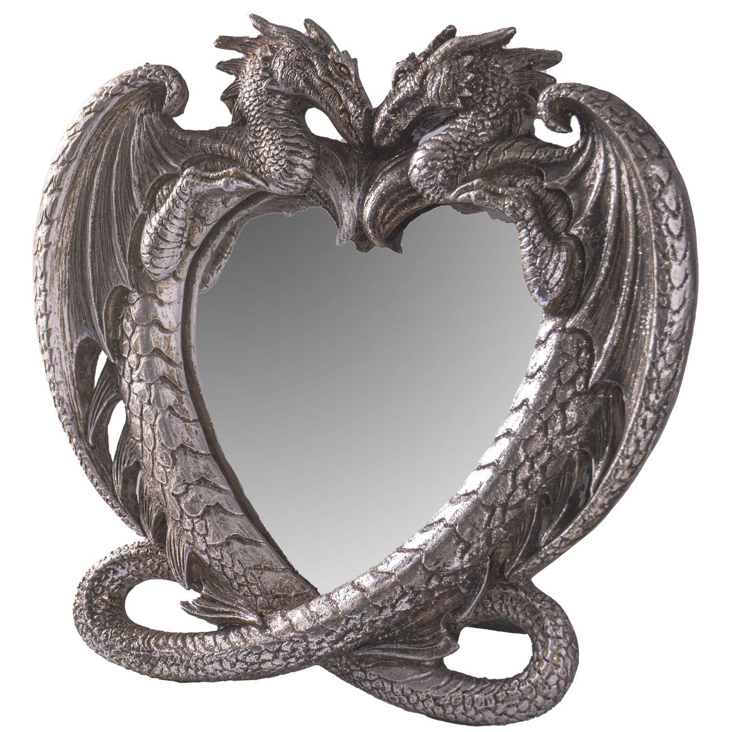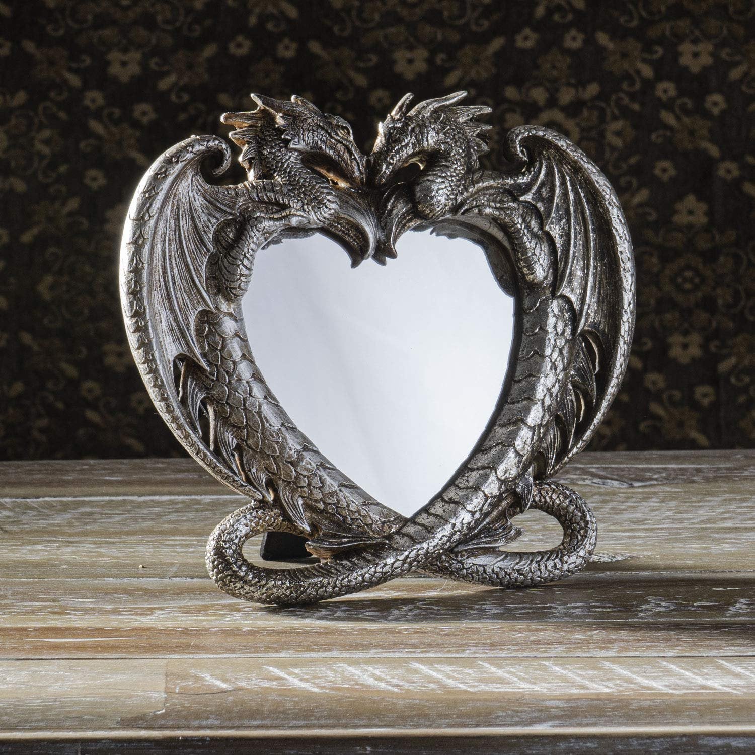 Pacific Trading Gothic Heart Shaped Dragon Mirror, Collectible Medieval Home Accent Décor Resin Piece for Wall or Tabletop Shelf, 6.3 x 5.91 Inches, PTC-14052