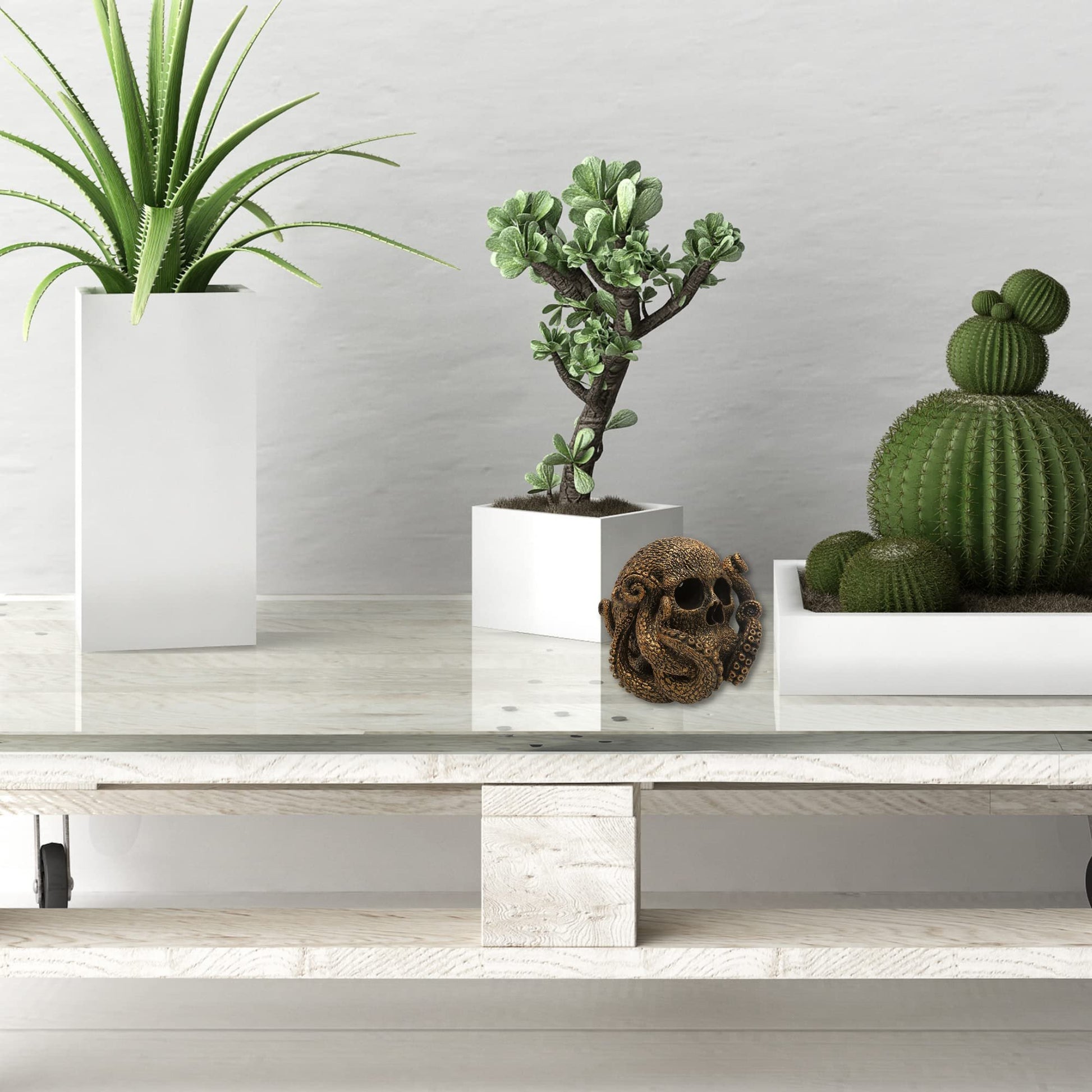 Pacific Trading Pacific Gothic Skull Metal Octopus Figurine, Marine Life Unique Statue Tabletop Decoration for Home, Sea Monster Home Decor Gift for Men, Brone