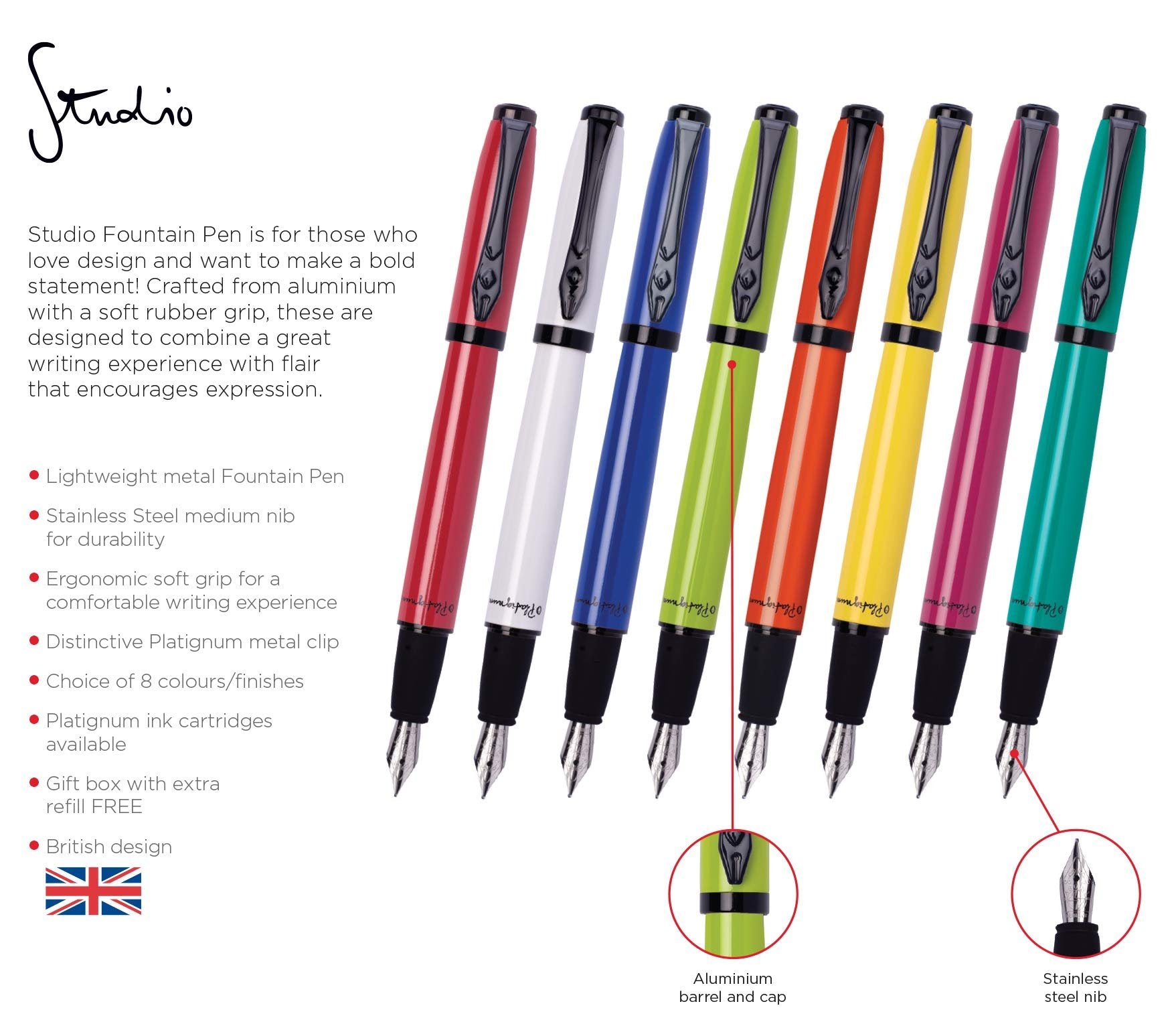 Platignum Studio Turquoise Fountain Pen with Blue Ink in Gift Box (Black Ink Refill Included) [Pack of 1] Ref: 50309