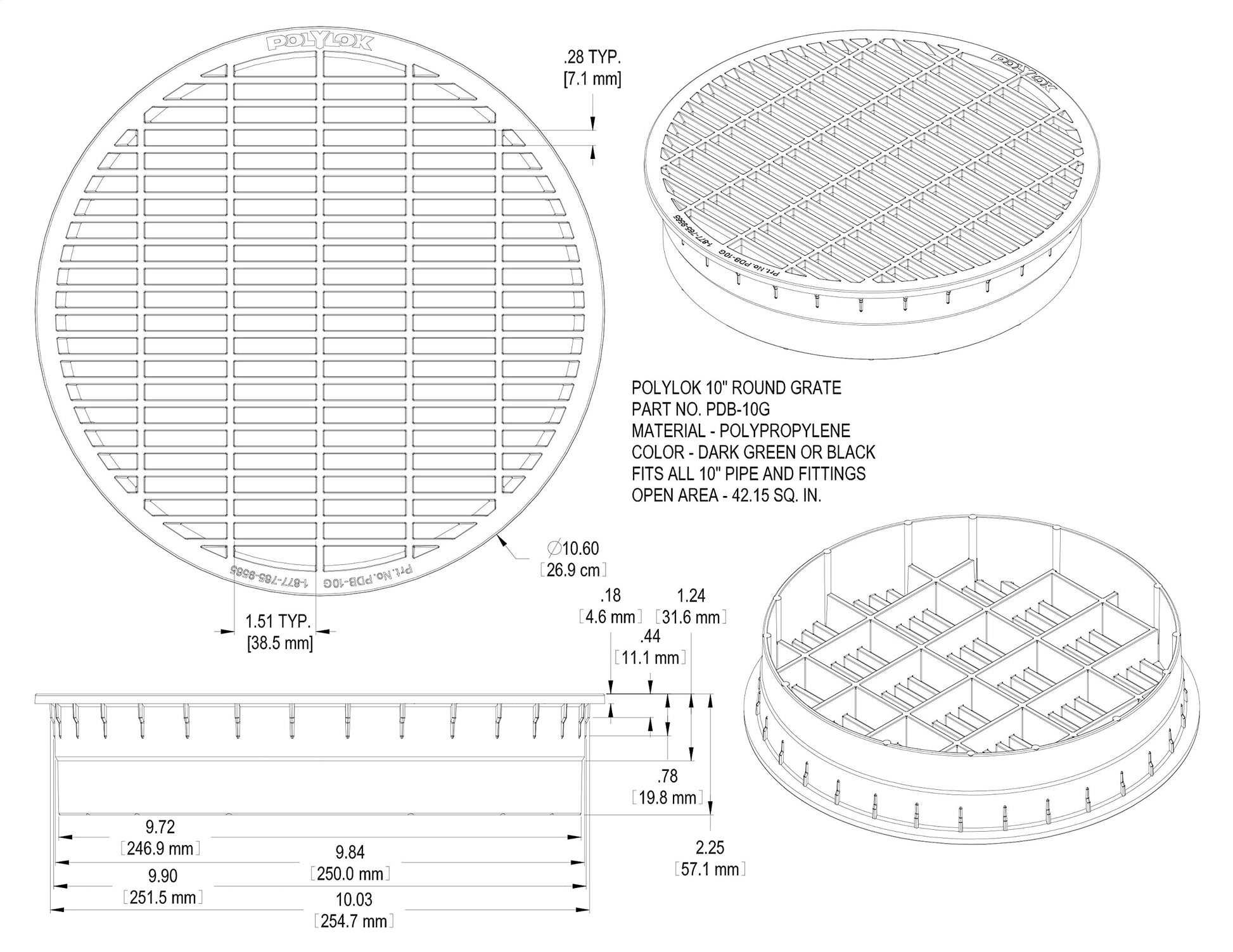 Polylok 10" Pipe Grate (Green)