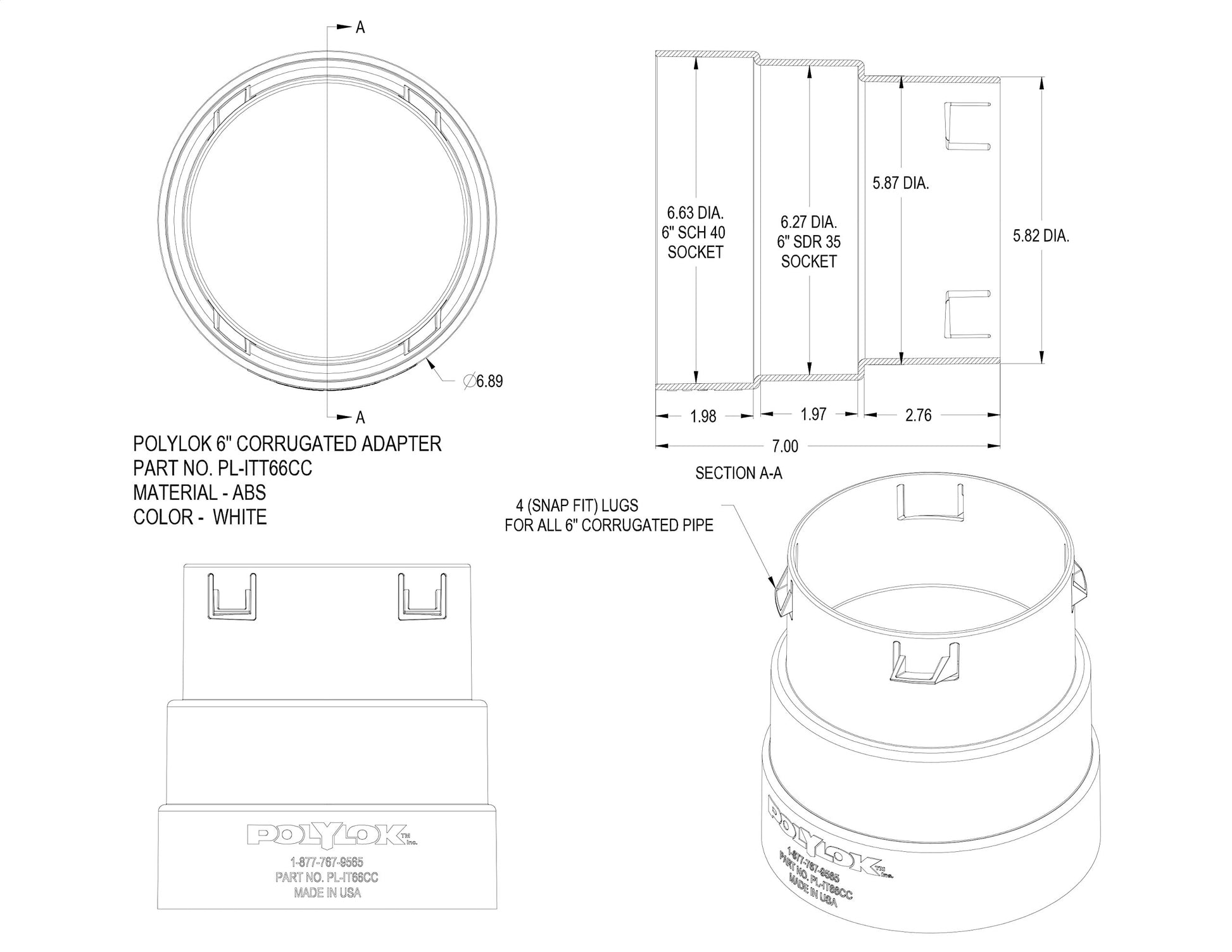 Do you have a problem where you have 6” SCH 40 or 6” SDR 35 PVC pipe that you need to connect to corrugated pipe? If so, Polylok has the best solution for you! Attach one end to the corrugated pipe, and then attach your PVC pipe to the other end, and you’re done. No tools needed other than your own hands. Fits: 6" corrugated pipe to 6" SDR 35 pipe or 6" SCH 40 pipeConnects 6" corrugated pipe to 6" SDR 35 pipe or 6" SCH 40 pipe