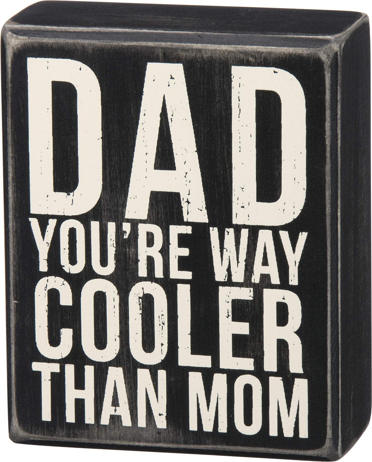 Primitives by Kathy Dad You're Way Cooler Than Mom Box SignBox sign measures 4x 5Made with high quality Wood with primitive design elementsBox Signs are specially designed to freely stand on their own or hang on the wall