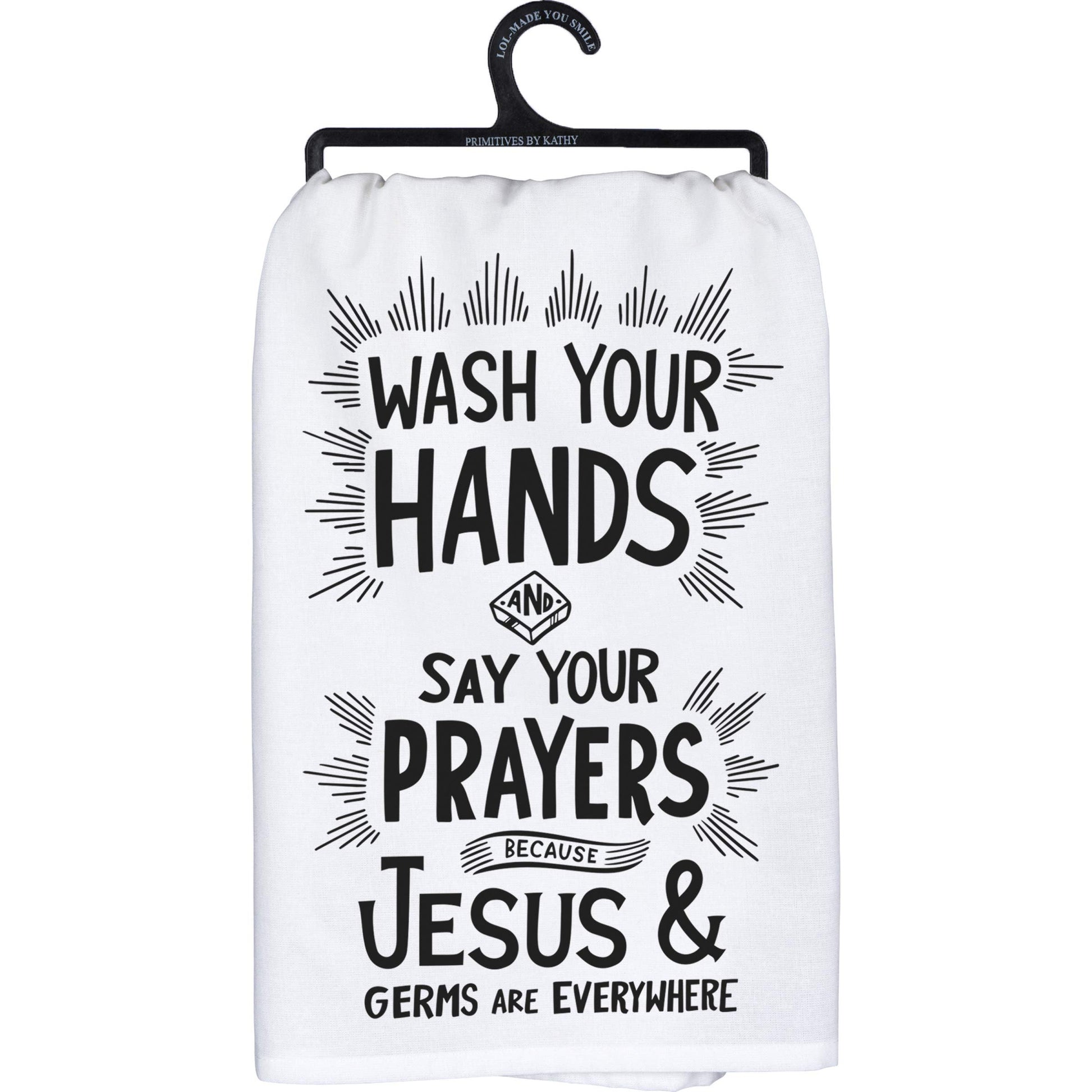 Primitives by Kathy Decorative Kitchen Towel, 28" x 28", Black, WhiteCottonMachine-washableClassic black and white designIncludes cotton tape loop for easy hangingGreat for gifting
