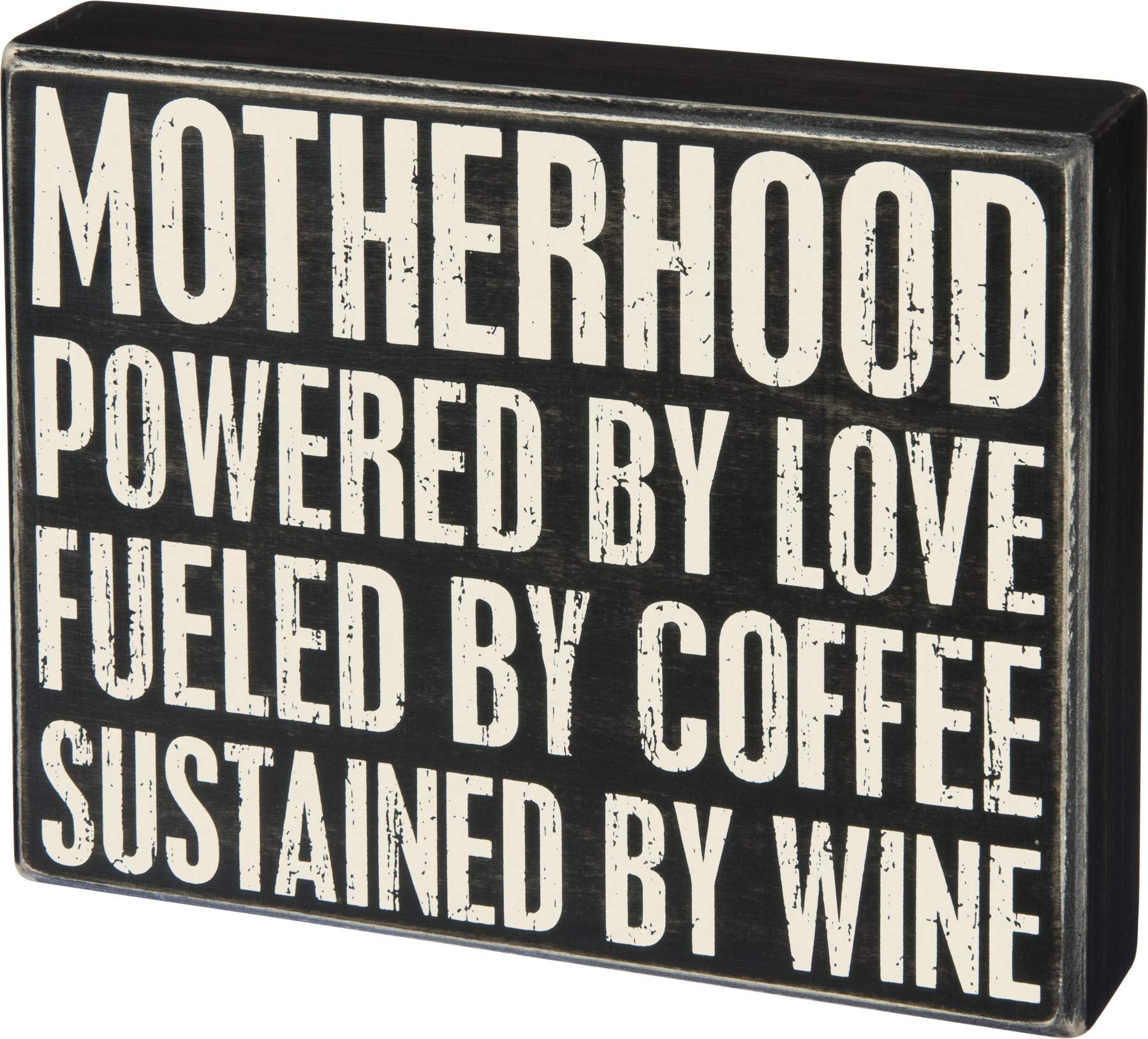 Primitives by Kathy Motherhood Powered by Love Coffee Wine 8 Inches Square Wood Box Sign Home and Garden Decor