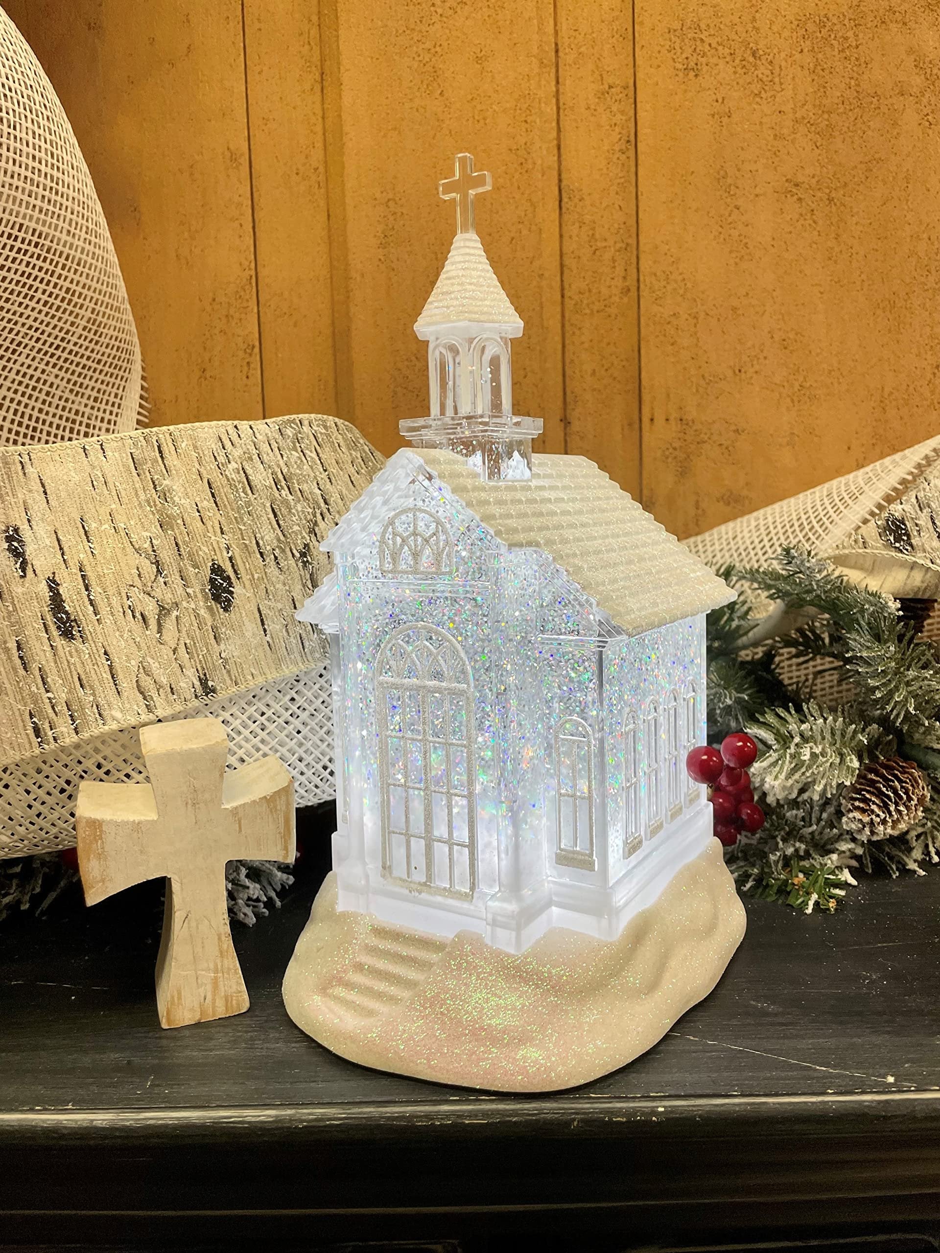 RAZ Imports 10.5" Church Water Lantern w/ Continuous swirling glitterBrighten up your home with this beautiful and festive home accentWhite snow-covered illuminated Church with a swirling snow effectWater lantern has the look of glass but made of durable acrylic and plastic. Requires 3 AA batteries (batteries not included)Measures approximately 10.5 inch inches. Perfect for displaying on a tabletop surface or nestled on a mantelShips in protective packaging. Ready to be gifted.
