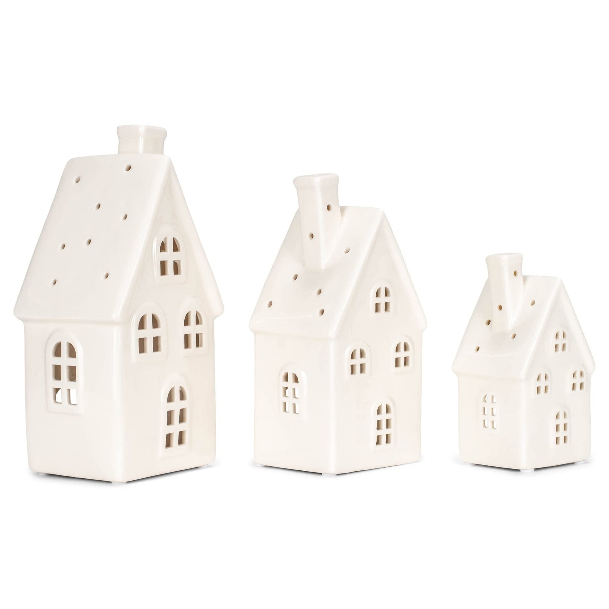 RAZ Imports 2022 Cozy Christmas 8.25" White Ceramic House, Set of 3