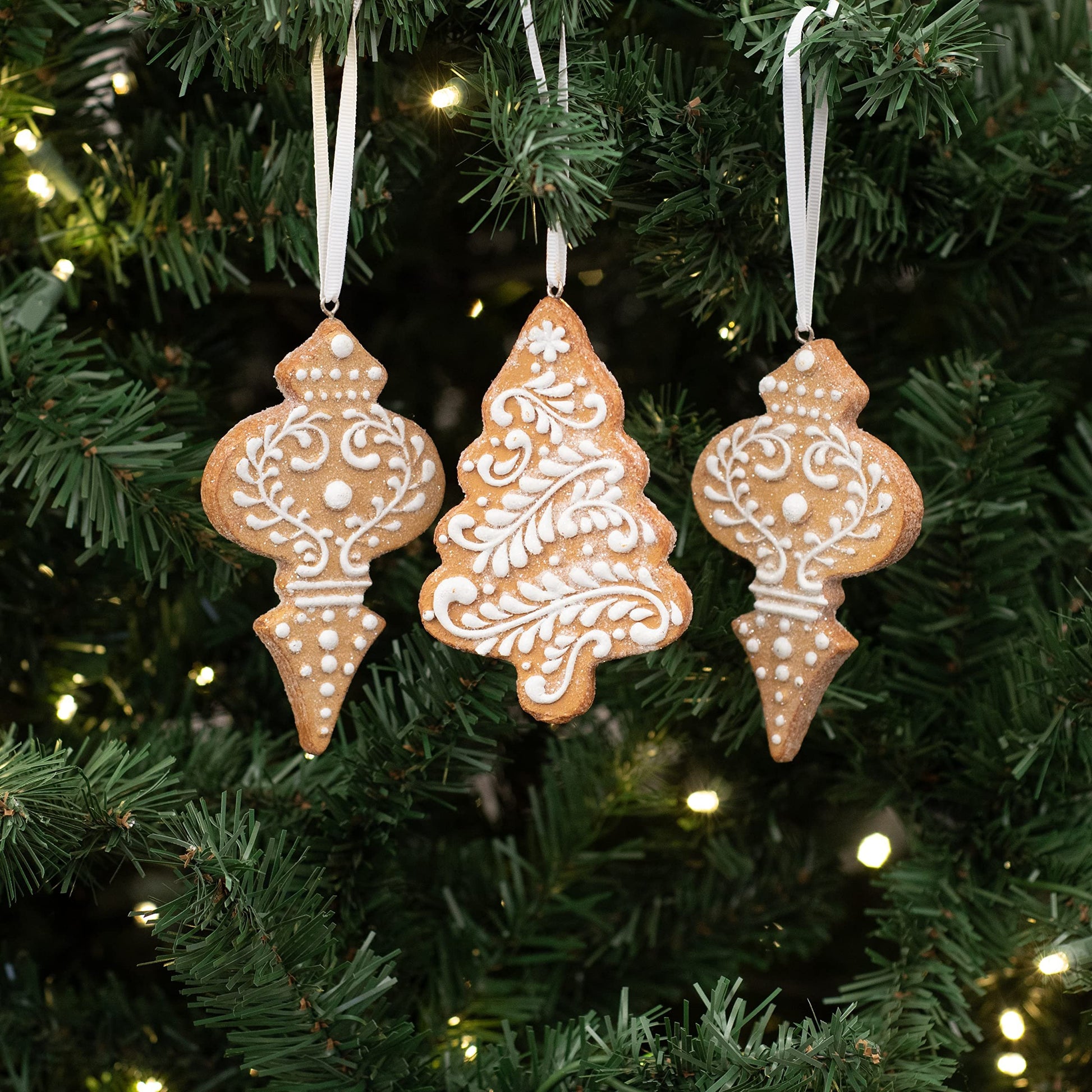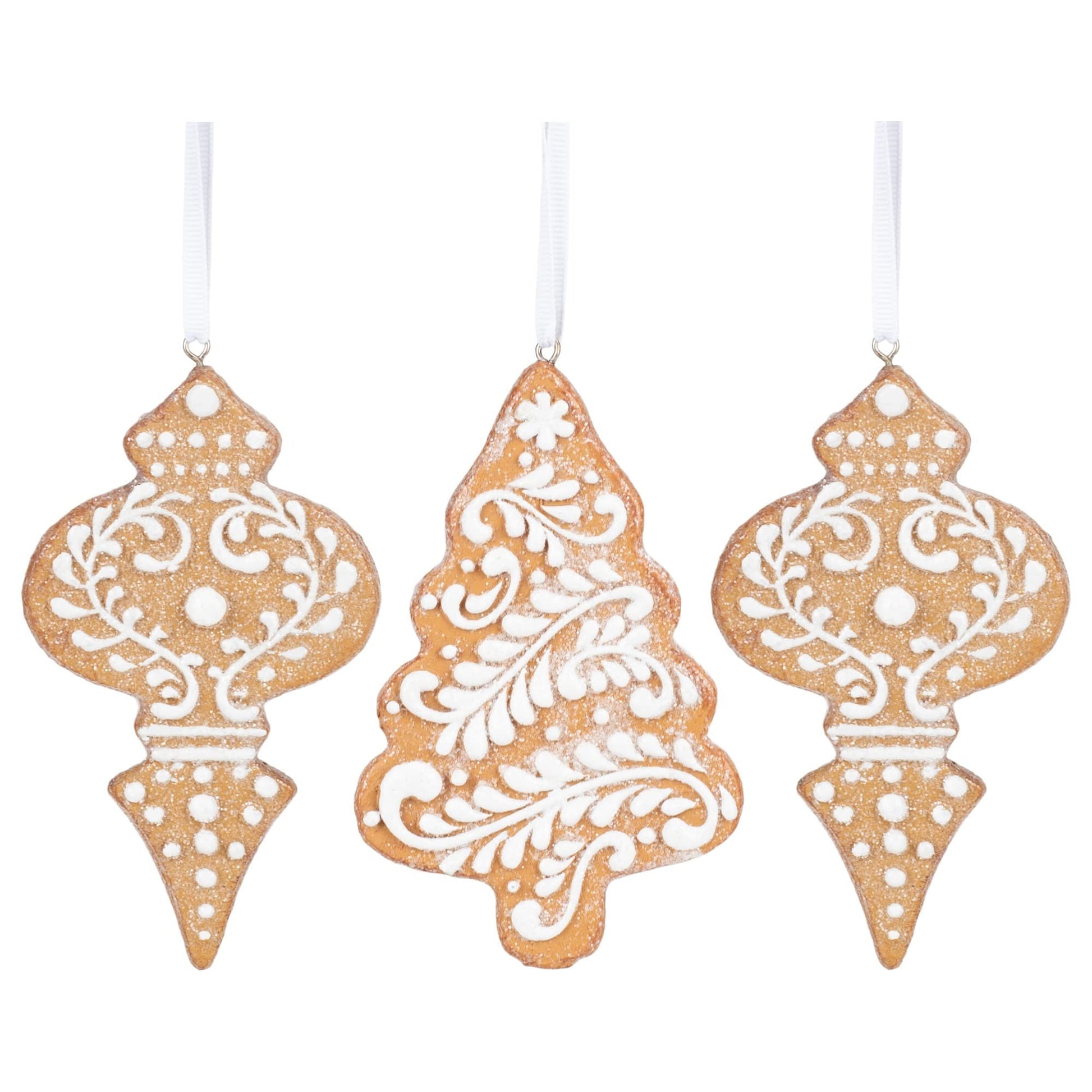 RAZ Imports 4.5" White Icing Gingerbread Christmas Tree Ornaments, Set of 3 Assorted OrnamentsRAZ Imports 4.5" White Icing Gingerbread Christmas Tree Ornaments, Set of 3 Assorted OrnamentsMaterial: Resin. Accented with GlitterGreat Ornaments for Your Holiday Decor