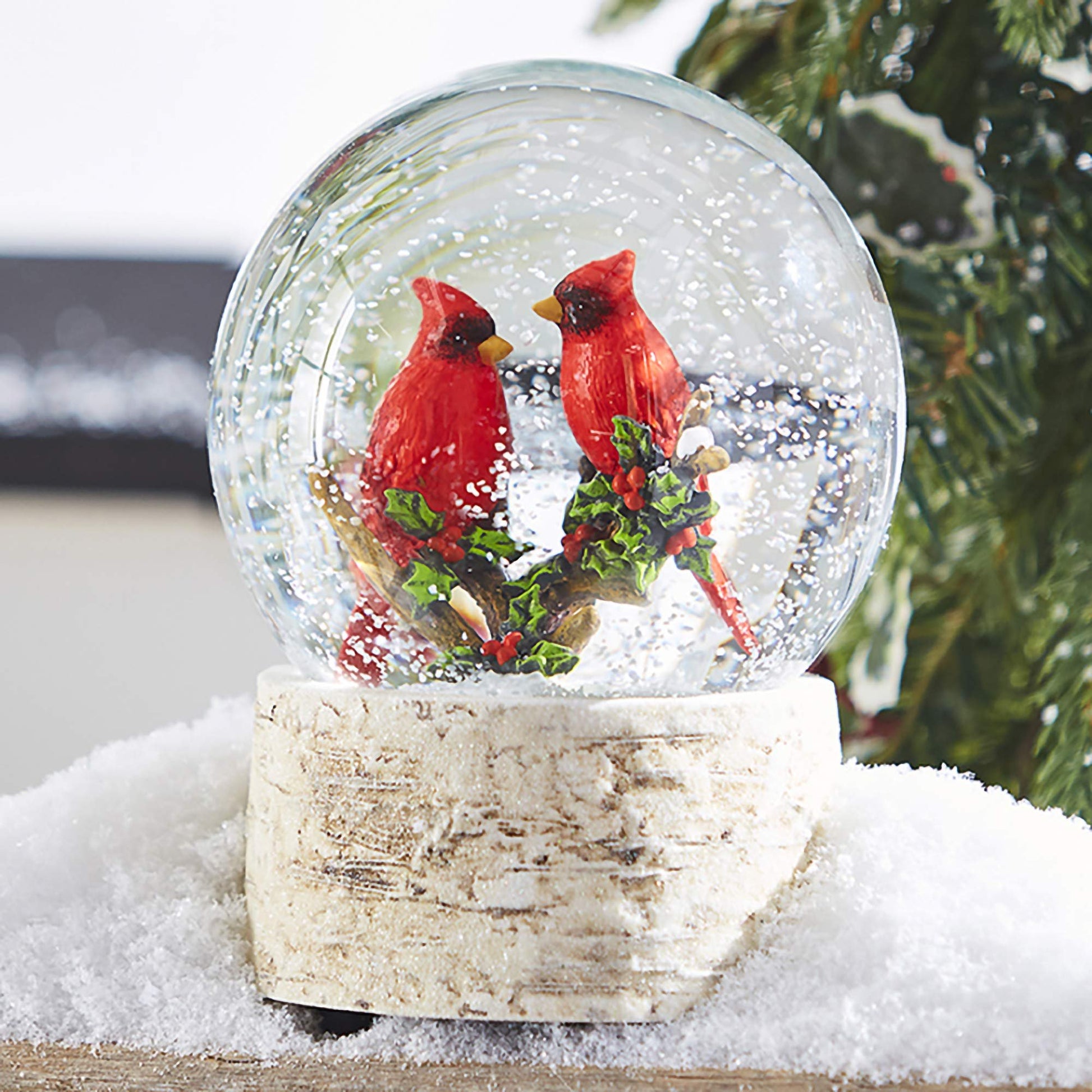 Raz Imports 5.5" Cardinals and Christmas Holly Snow Water Globe