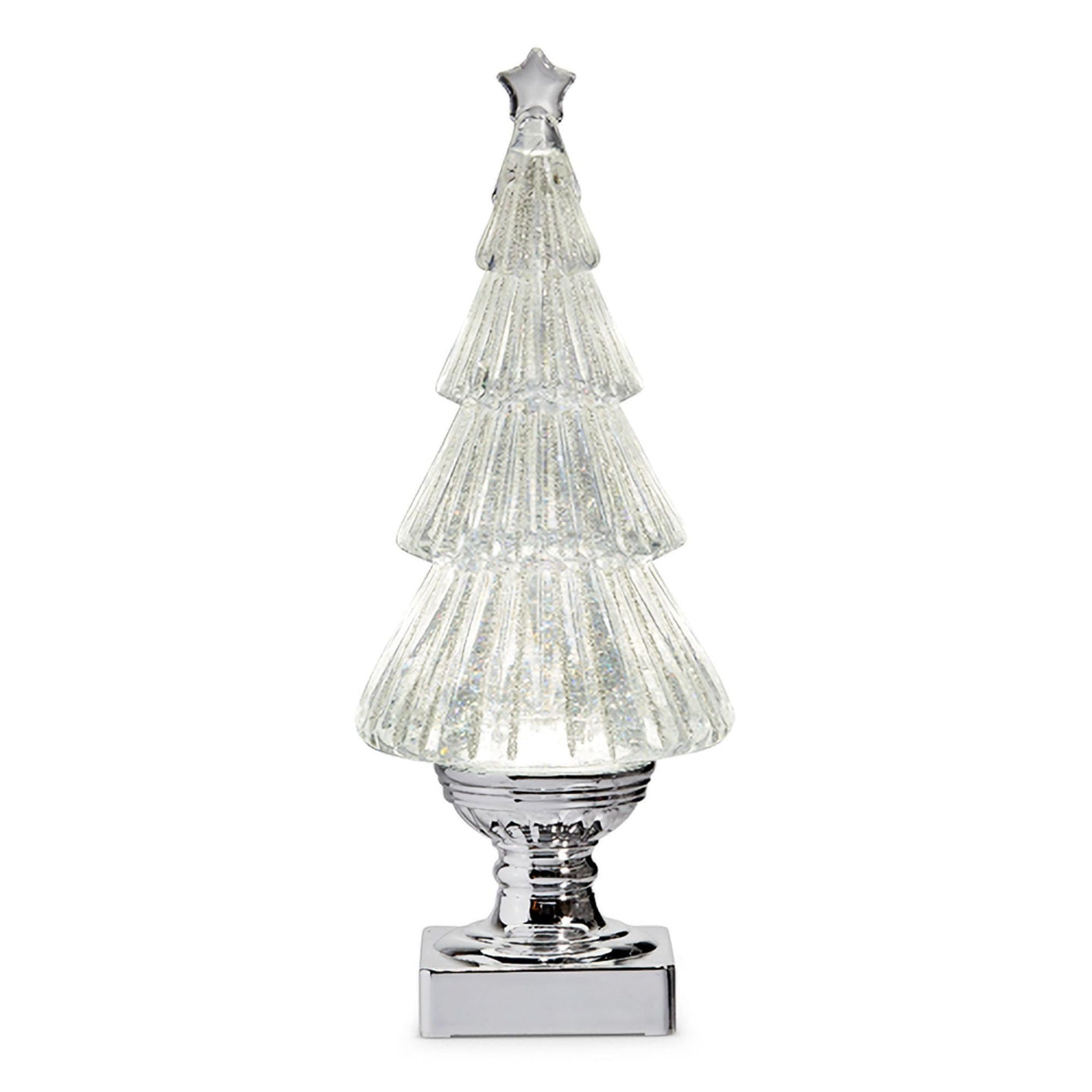 Raz Imports Lighted Flat Christmas Tree with Silver Swirling Glitter, 12.25-inch Height, Holiday Season Decoration