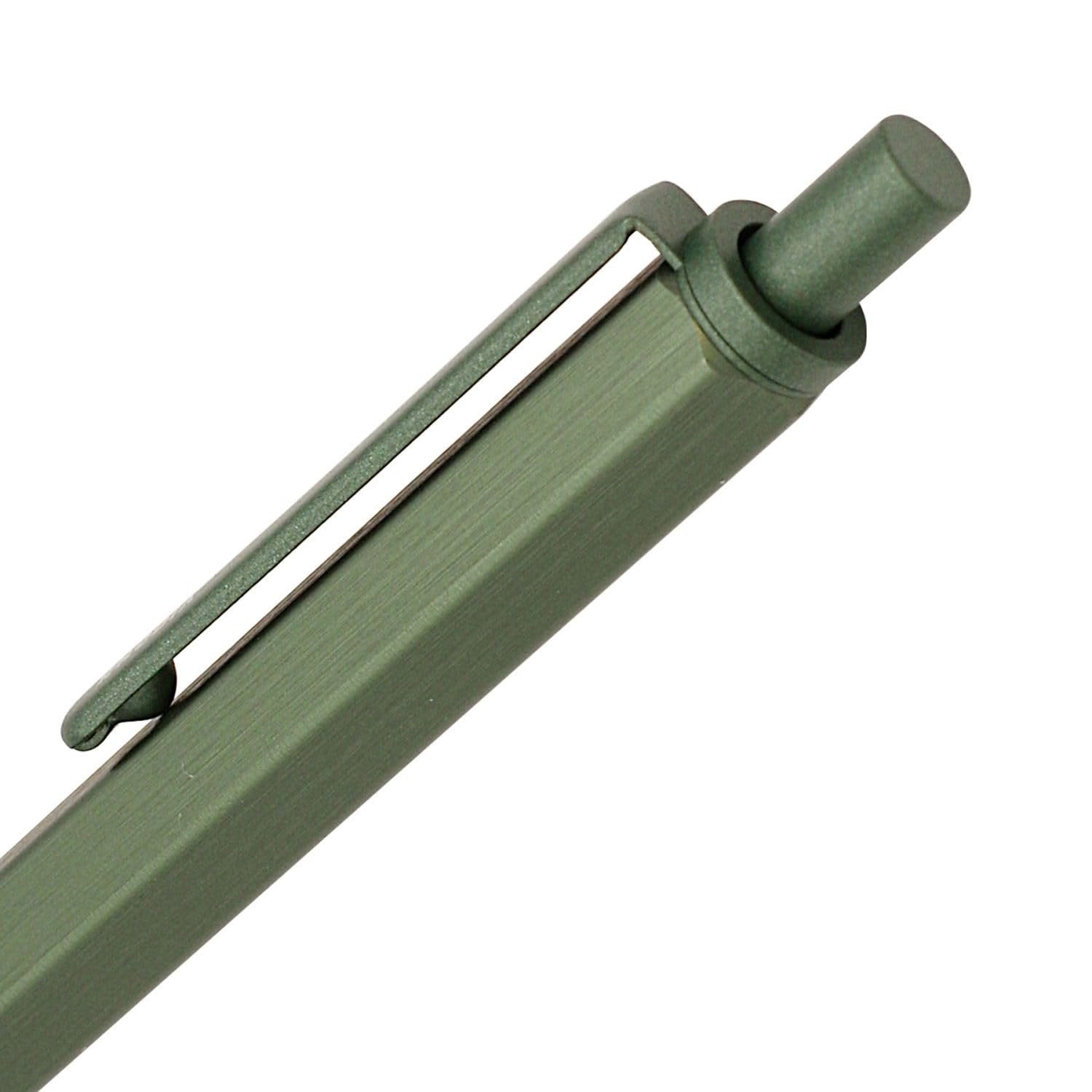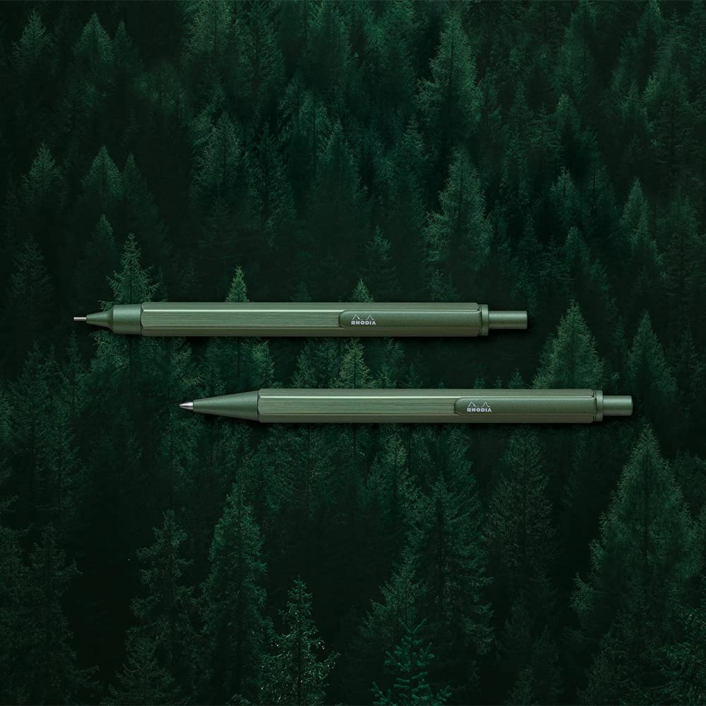 Rhodia 9387C - scRipt Refillable Ballpoint Pen Hexagonal Brushed Aluminium Barrel - Sage - 0.7 mm High Precision Retractable Ballpoint Tip, Black Ink - scRipt CollectionThe pen tip is easy to see and allows you to draw freelyProduct Specifications: Pencil lead diameter 0.02 inch (0.5 mm) (built-in lead: B)Mechanism: RetractableSpecifications: Aluminum, anodized finish (shaft), brass, painted finish (clip, tip)Product Size/Weight: Total length 5.0 inches (128 mm), Shaft diameter 0.4 inches (9 mm), Maximum width 0.5 inches (13 mm), 0.6 oz (18