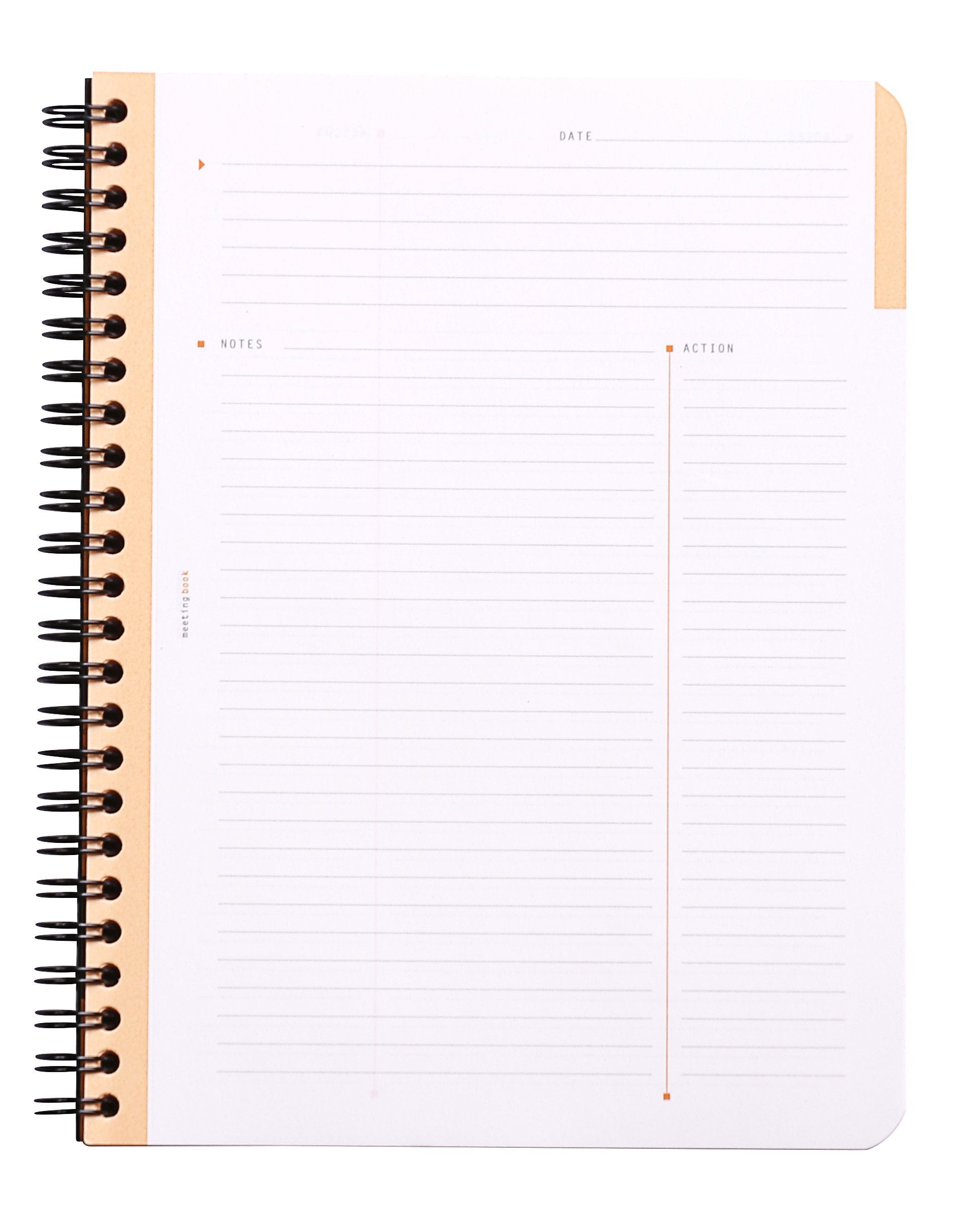 Rhodia Efficient Meeting Notebook, Black 8.25" x 6.25"A5+/160x210mm in sizePaper within the notebook is made from Clairefontaine 80 g superfine Vellum80 detachable micro-perforated sheets within the bookSheets have Date, Notes and Action headingsDouble-wire binding makes pages easy to turn