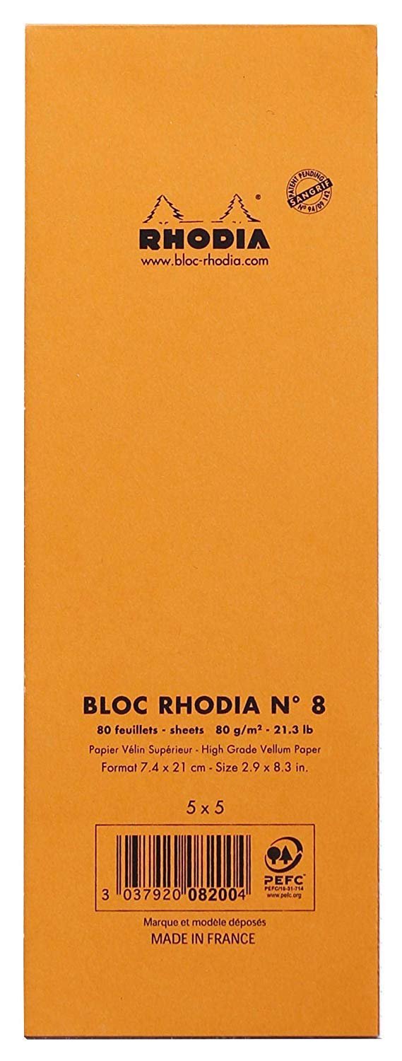 Rhodia Staplebound Notepad - Graph 80 sheets - 3 x 8 1/4 - Orange cover, Pack of 5