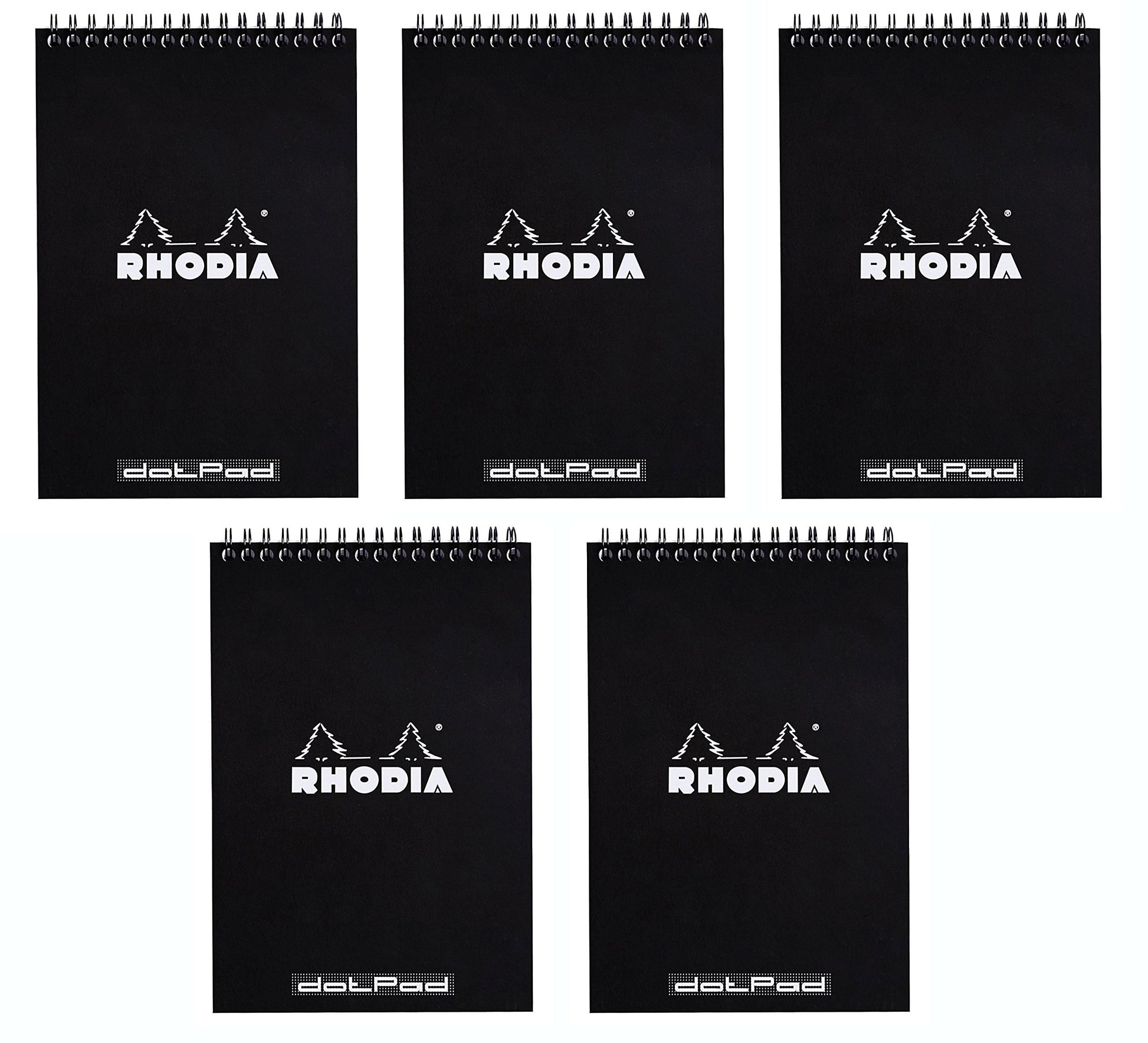 Rhodia Wirebound Black Notepads dot - 6 in. x 8-1/4 in, Pack of 5