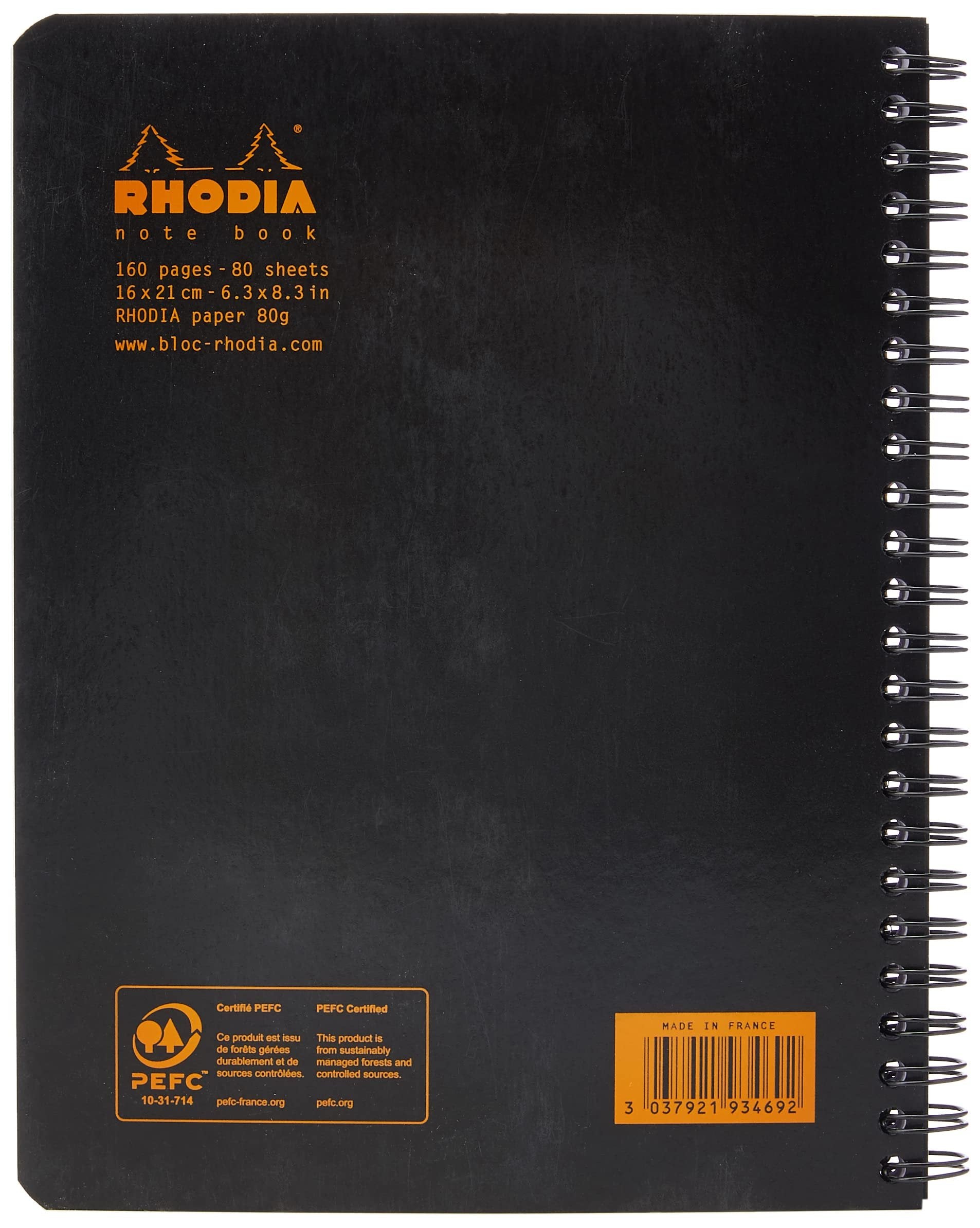 RHODIA 193039C - Spiral Notebook (Full Bound) Notebook Black - A4+ - Dot Dot - 160 Detachable Pages - White Clairefontaine Paper 80 g/m - Soft and Resistant Cover - ClassicDetachable pages microperforatedCover is flexible and waterproofDetachable pages not punchedMADE IN FRANCE in our factory in Alsace, notebooks, notebooks and notepads with an authentic and timeless design; With the Rhodia CLASSIC collection, the great stationery classics have an incomparable look in Orange & Black!"CLAIREFONTAINE PAPER superfine vellum 80 g: premium paper with unique satin finish and whiteness. Its excellent opacity allows you to write on both sides without showing through"ECOLOGICAL: PEFC-certified paper comes from sustainably managed forests and controlled sources. The printing of the ruling is made from alcohol-free vegetable inks, diluted with water and compliant with European REACH directives. Acid-free, pH neutral. Suitable for vegansMADE IN FRANCE in our factory in Alsace, notebooks, notebooks and notepads with an authentic and timeless design. With the Rhodia CLASSIC collection, the great stationery classics have an incomparable look in Orange & Black!