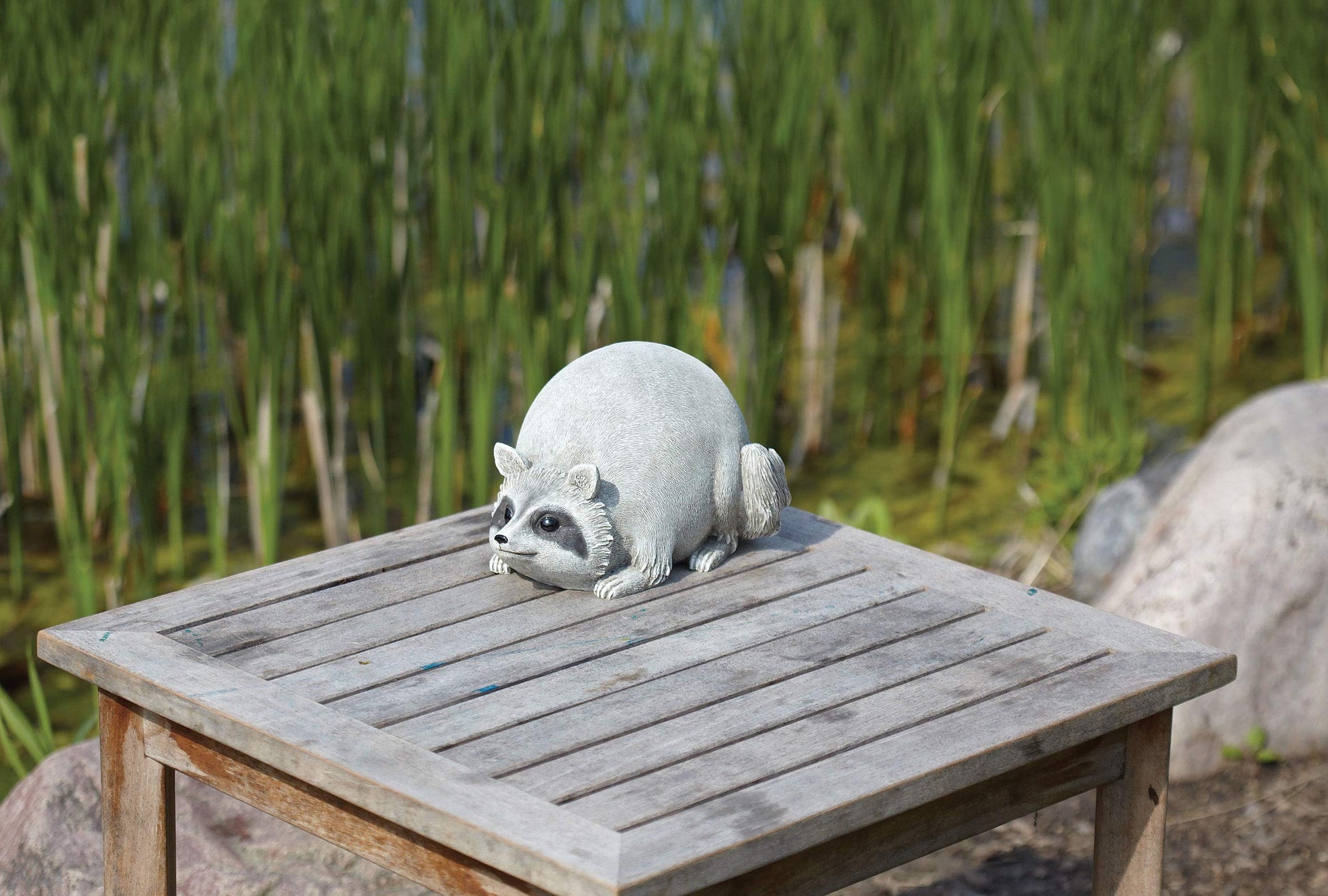 Roman 16278 Raccoon Pudgy Pals Grey 10 x 5.5 Inch Resin Stone Indoor Outdoor Garden FigurineCute and pudgy raccoon figurine adds charm and appeal to any home gardenMeasures approximately 10 x 7 x 5.5 inchesMade of quality resin stoneware materialPerfect for indoor or outdoor display and useCarefully packaged in a fitted box for easy gifting and storage