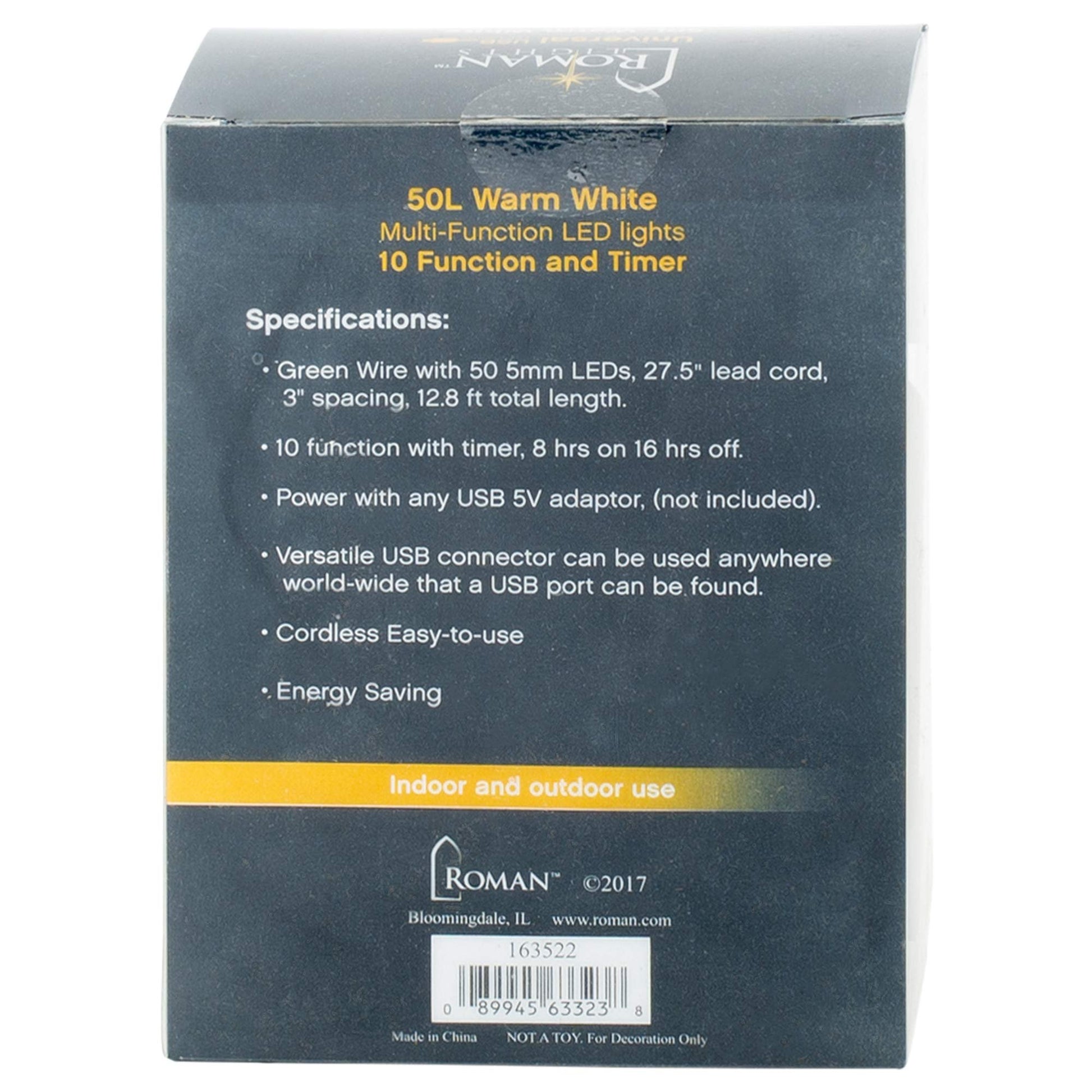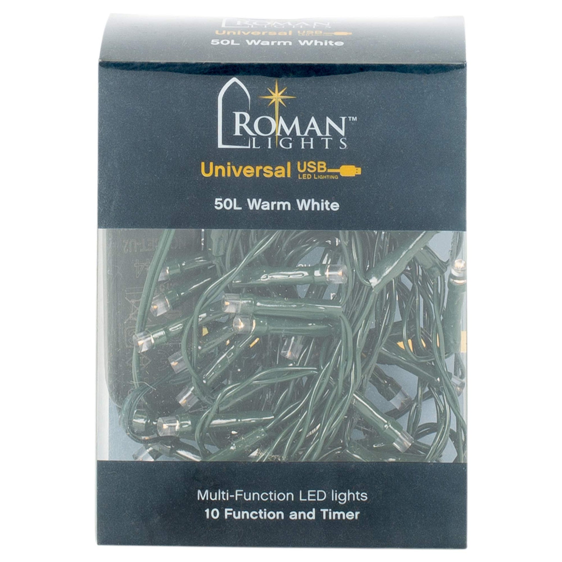 Roman 50L USB WARMWHITE LED Green Cord 10 Function 8/16 Timer