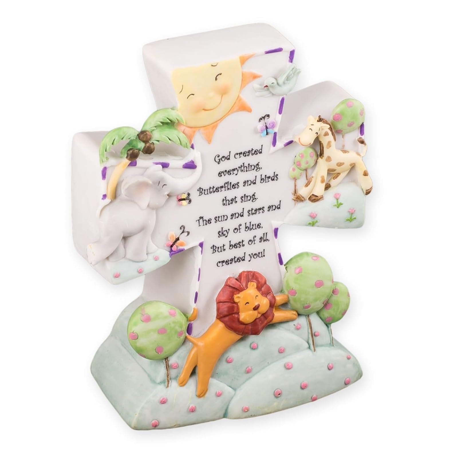 Roman 6.5" God Created Everything Cross Nightlight, Nursery Decor, Baptism or Baby Shower Gift, Christian Religious Accent Light