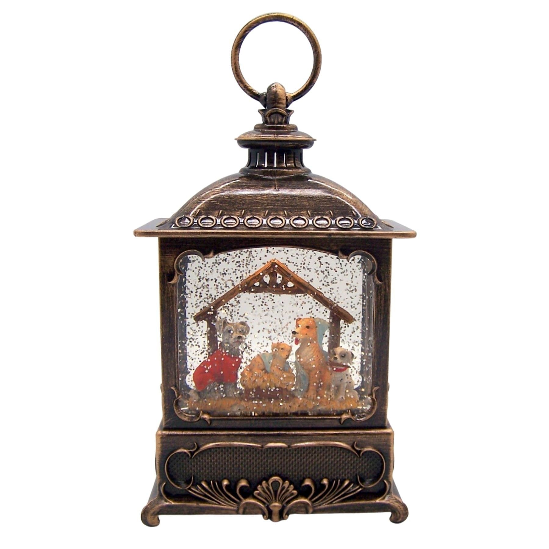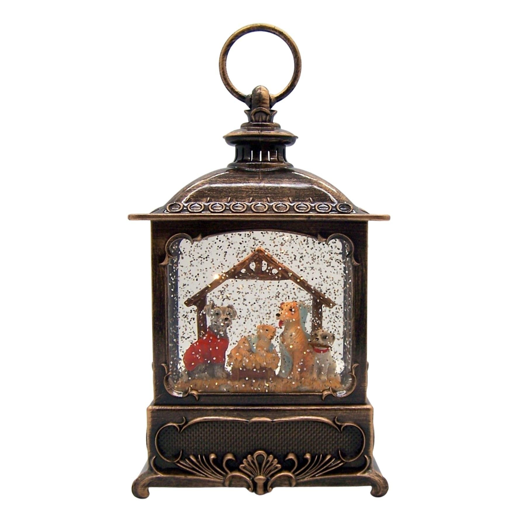 Roman Christmas Musical Dog Pageant Lantern, 8.75" H, Plastic, Battery Operated