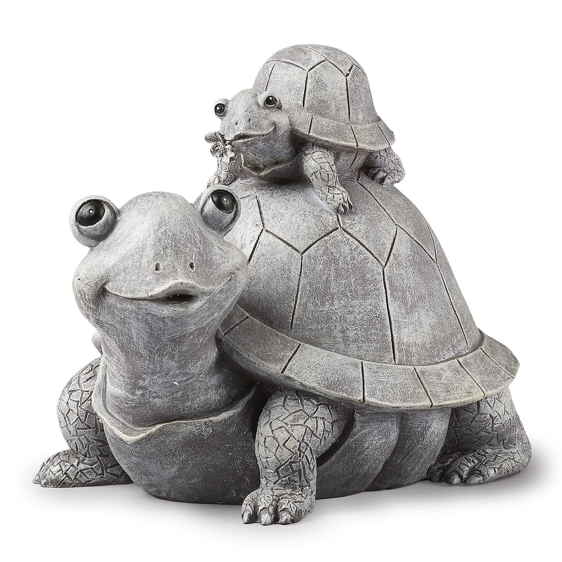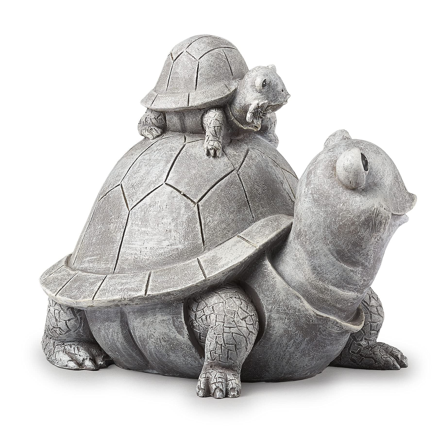 Roman Garden - Turtle and Baby Statue, 7" H, Pudgy Pals Collection, Resin and Dolomite, Decorative, Garden Gift, Home Outdoor Decor, Durable, Long LastingKEY FEATURES: This intricately detailed statue portrays a baby turtle standing atop of their parent turtle. This Turtle and Baby garden statue is part of Roman's renowned Pudgy Pals collection. The impeccable finish and realistic texture bring whimsical charm to any outdoor space.EXCEPTIONAL QUALITY: This unique statue is carefully constructed of high-quality resin and dolomite, rendering it very durable and long-lasting in a garden, yard, porch, or patio setting year round. It measures approximately 7.09"H x 6.5"W x 9.06"L.HIGHLY DETAILED CRAFTSMANSHIP: The intricate painting, features, and design of Roman's Garden collection items make pieces splendid works of art in any outdoor space. The sculpted shells and intricate detailing of the turtles' legs will bring these friendly animals to life in any garden.DECORATIVE GIFT: Each item in Roman's Garden collection is a striking addition to any outdoor space. This statue would be the perfect gift for those looking to liven their garden, yard, porch, or patio and spread joy within their space.EXCLUSIVELY DISTRIBUTED: Roman's Garden collection has many best-selling items, from Pudgy Pals and Stepping Stones to Angels and Gnomes. Create a personalized outdoor sanctuary or add flair to your garden with Roman's large selection of outdoor decor.