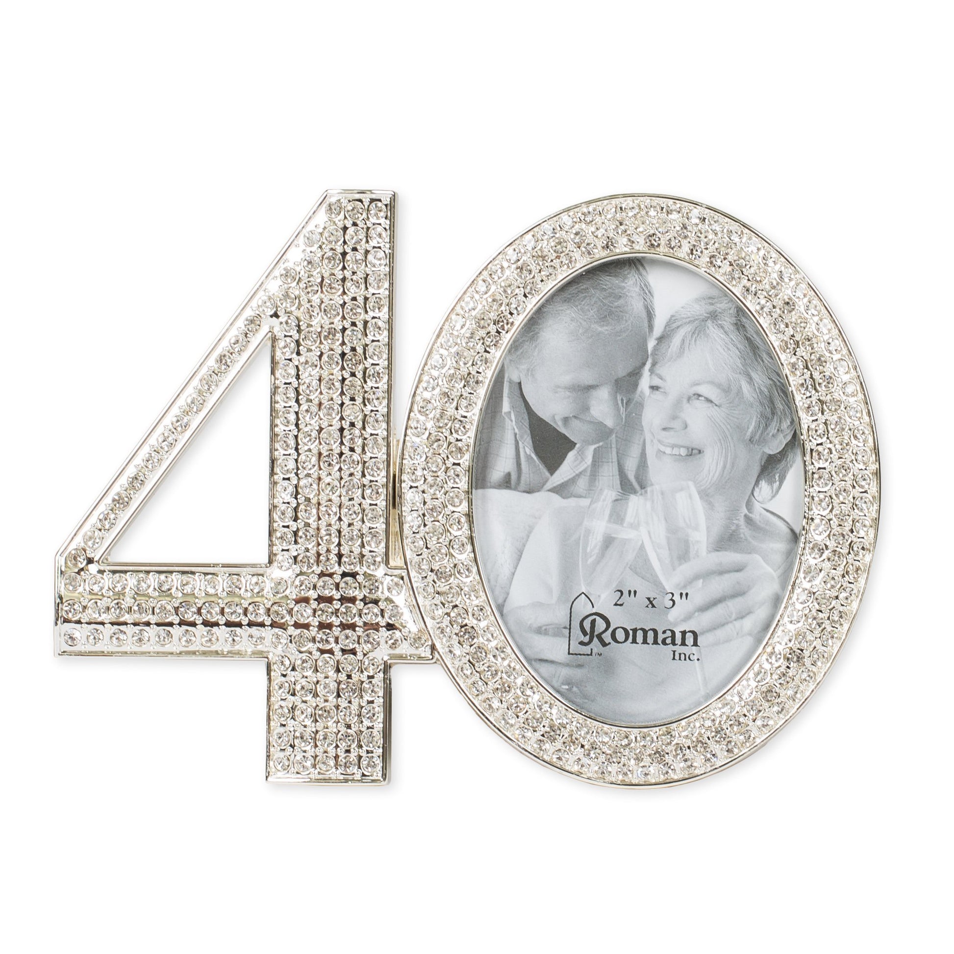 Roman Giftware Inc., Caroline Collection, Wedding & Anniversary, 3.25" H 40TH Rhinestone Frame,Religious, Inspirational, Durable (4x1x3)