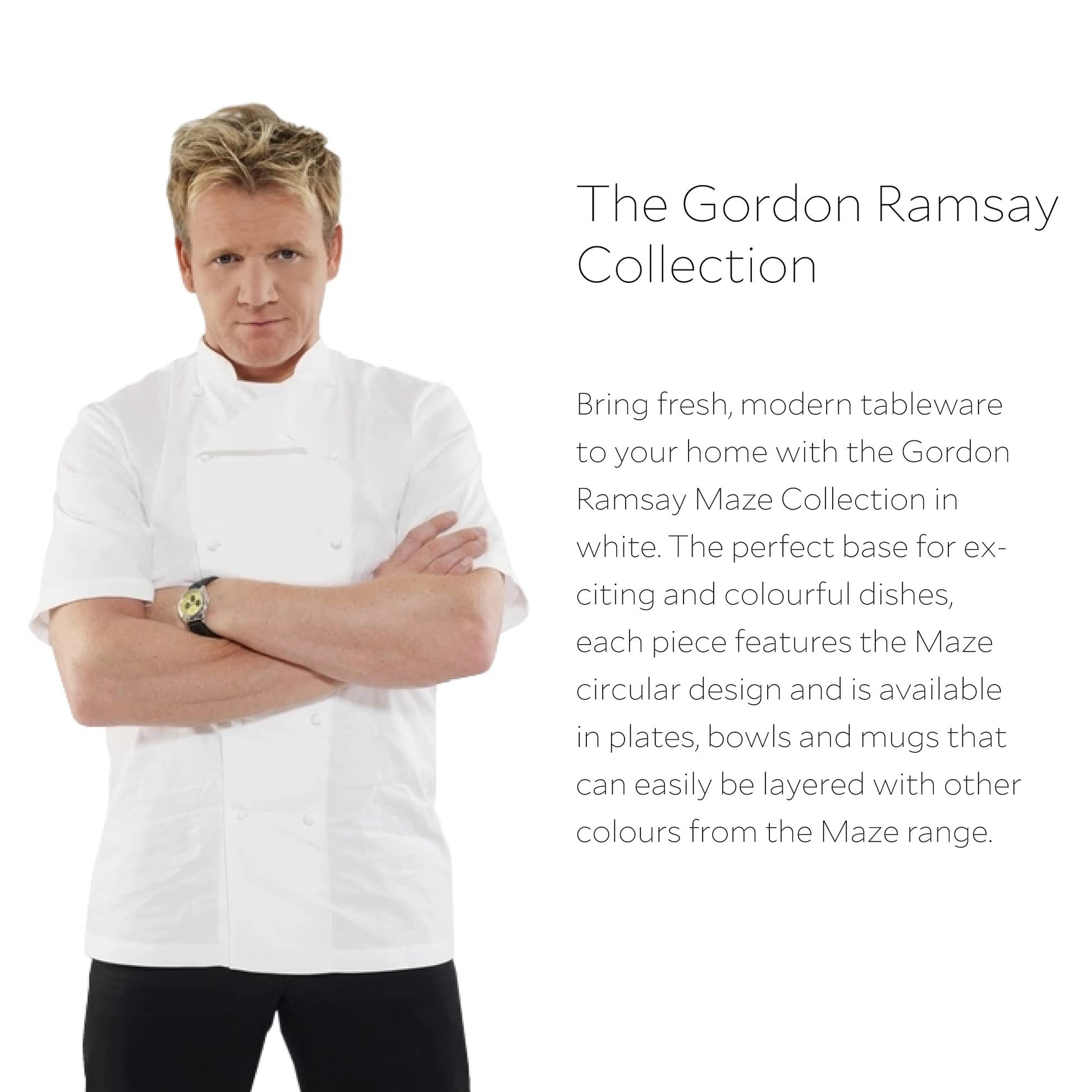 Royal Doulton Exclusively for Gordon Ramsay Maze White Salad Plate, Set of 4Part of the Maze White Collection by Royal Doulton Exclusively for Gordon RamsayCasual Collection for everyday dining and get-togethers. Complete the set, or combine with other Gordon Ramsay Maze Collections for a unique lookMade from high quality stoneware, rendered in a crisp white glaze and decorated with embossed concentric circles that attract the eye towards the center of each dishDishwasher and Microwave safe. Oven Safe to 212 DegreesGift Boxed