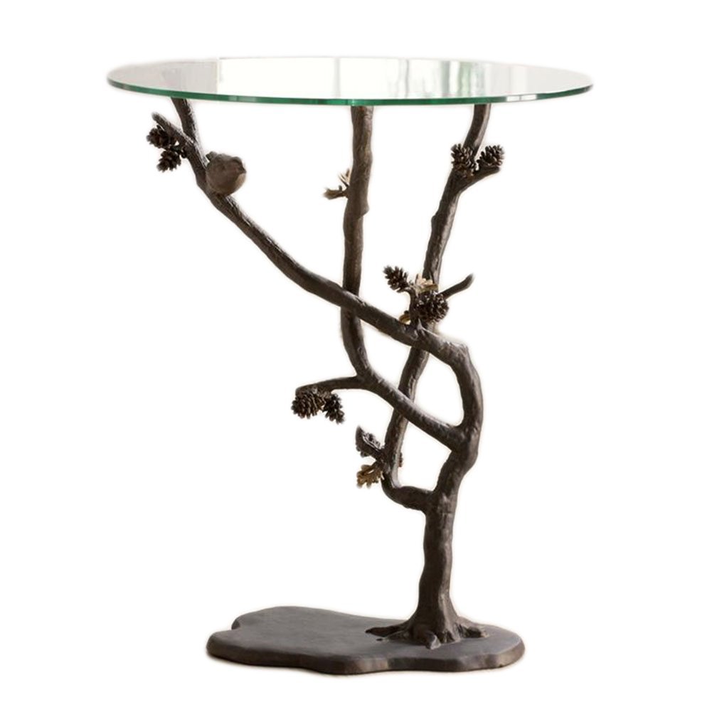 33491 Features: -Constructed from aluminum and glass. Shape: -Round. Design: -Table. Style: -Rustic/Novelty. Top Finish: -Metal. Base Material: -Metal. Top Material: -Glass. Base Type: -Pedestal. -Bird collection. -Unique design . Dimensions: Overall Height - Top to Bottom: -26 Inches. Overall Width - Side to Side: -22 Inches. Overall Depth - Front to Back: -22 Inches. Overall Product Weight: -16.5 Pounds.22"w x 22"d x 26"hAluminum & Glass