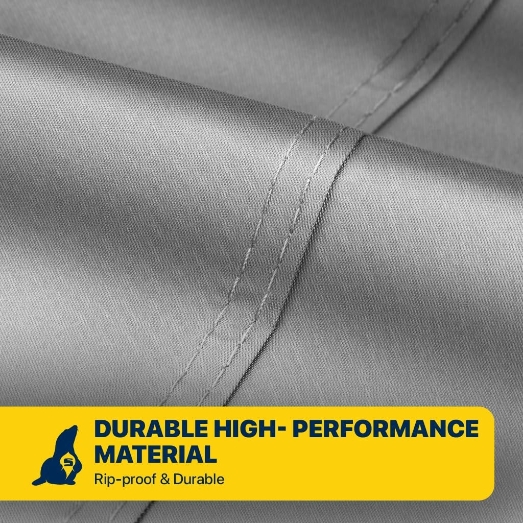 Seal Skin Covers Waterproof Truck Cover Crafted from multiple layers of high-quality PEVA fabric and spunlaced cotton backing, it offers water resistance and soft, absorbent coverage against scratches. Installing in under 2 minutes, its elastic hem and windproof straps ensure a snug fit, while the included cable lock system prevents theft or displacement. This cover offers all-weather protection, including waterproof, snowproof, and UV-resistant qualities, shielding against hail, animals, and tree sap. It's not just durable; it's eco-friendly and tear-resistant too. Plus, with free extras like a storage bag, antenna patch kit, and additional straps and buckles, you have everything you need. Prioritize peace of mind by measuring your truck's dimensions before purchase, and trust our dedicated customer support to promptly assist with any queries or concerns.𝗦𝗡𝗨𝗚 𝗙𝗜𝗧: Equipped with front, middle, and rear windproof straps, elastic hem, and click-tight buckles for a tight grip even in windy conditions. Reinforced grommets add theft protection.𝗪𝗔𝗧𝗘𝗥𝗣𝗥𝗢𝗢𝗙: Fully waterproof and moisture-resistant, this truck cover prevents rain from seeping through. Perfect for outdoor storage, it keeps your vehicle dry and protected even during heavy rainfall.𝗪𝗔𝗥𝗥𝗔𝗡𝗧𝗬: This product comes with a 12-month full warranty, Providing reliable protection.𝗗𝗨𝗥𝗔𝗕𝗜𝗟𝗜𝗧𝗬: Crafted from high-quality PEVA material with strong stitching and reinforced seams, this truck cover offers long-lasting performance. It resists wear and tear, ensuring reliable protection.𝗔𝗟𝗟-𝗪𝗘𝗔𝗧𝗛𝗘𝗥 𝗣𝗥𝗢𝗧𝗘𝗖𝗧𝗜𝗢𝗡: This truck cover shields vehicle from rain, snow, UV rays, wind, hail, dust, and more.