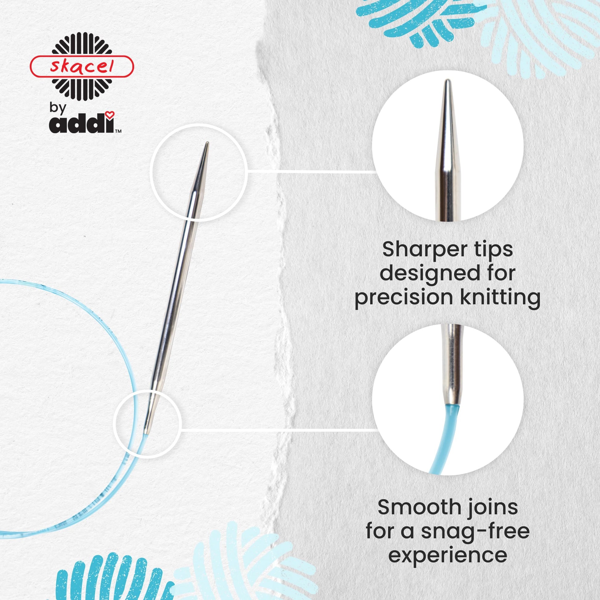 Craft intricate patterns effortlessly with skacel by addi Rocket Circular Knitting Needles! Featuring a durable brass construction, our metal knitting needles for adults are built to last, offering reliable performance over several projects and protecting against wear and tear while maintaining a polished finish. Great for both beginning hobbyists and seasoned knitters, our needle sets feature sharp tips ideal for precision knitting, making them great for fine textiles and intricate lacework. Our knitting tools allow for seamless transitions between yarns to offer a snag-free experience, enhancing your efficiency and creativity. The pliable nylon cord of our knitting supplies offers flexibility to ensure your knitting flow remains uninterrupted and reduce wrist strain during long projects. Featuring a perfect blend of craftsmanship and functionality, our knitting in the round needles are a must-have addition to any knitter's toolkit. Explore endless possibilities with our versatile circular knitting sticks set and elevate your knitting projects to new heights!CIRCULAR KNIT NEEDLES: Enhance your creativity and efficiency skacel by addi Rocket Knitting Needles! Our round brass knitting needles allow you to craft intricate patterns effortlessly, and are paired with a durable nylon cord to ensure your knitting flow remains uninterrupted, reducing wrist strain during long projectsPRECISION PERFECT FOR DELICATE CREATIONS: Our single point knitting needles feature sharp tips designed for precision knitting, making them ideal for intricate lacework and fine textiles; our circle knitting needles allow your creativity to shine through refined and detailed projects while enhancing your technical skillsSMOOTH TRANSITIONS: Our knitting needles for adults offer smooth joins between yarns to ensure a snag-free experience; the premium quality pliable blue nylon cord provides flexibility, allowing you to easily maneuver through complex patternsDURABLE CONSTRUCTION: Featuring a strong and sturdy brass construction, our yarn needles are built to last, protecting against wear and tear while maintaining a polished finish. Suitable for both beginners and seasoned knitters, offering reliable performance over countless projectsGREAT GIFT FOR KNITTING ENTHUSIASTS: Our knitting needles set is perfect for inspiring creativity in fellow crafters, make for a great gift for hobbyists and professional knitters alike, and an excellent and practical addition to any knitting kit