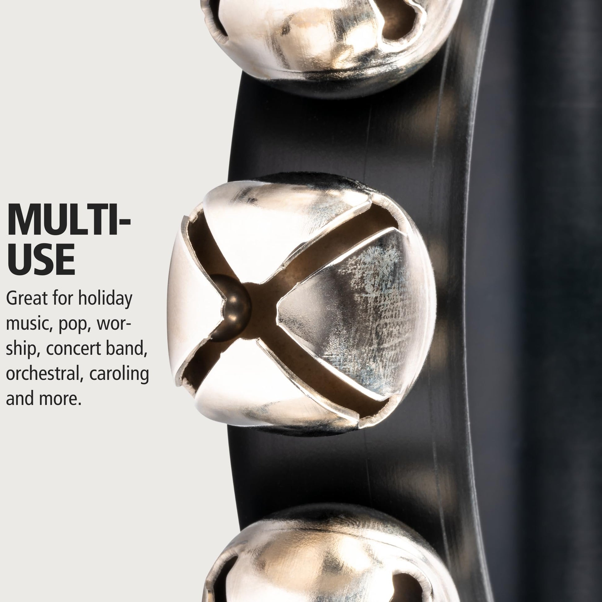 Meinl Percussion Sleigh Authentic Steel Jingles for Bright Sounds — for Holidays, Christmas Caroling, and Musical Performance — Two-Year Warranty, Black, 12 Bells (SLB12)GENUINE SLEIGH BELL SOUND: the tone matches perfectly with Leroy Anderson's "Sleigh Ride"; these real steel sleigh bells have spot-on shimmering and authentic jingle sound that everyone will know when they hear itWHY IT MATTERS: it's hard to go wrong when you have that perfect, old-fashioned sleigh bell sound; from caroling to concert band, these bells have an instantly recognizable tone to bring the moodONE TAKEAWAY: their volume cuts through other instruments while being easy on the ears; play them with live bands, large ensembles, or orchestras, and get the right mix of clarity, pitch, and toneOF NOTE: you can use these bells for any reason, and not just for performance; great for parties, holiday season red kettle donation drives, or playing around the house for your kids on ChristmasZOOM IN: its solid wood construction will last a lifetime; the weight and ergonomic handle are professional level for durability, balance, and comfort (this is NOT a toy)BY THE NUMBERS: measures 12" long and weighs 1.05 lbs; equipped with 12 real steel sleigh bells and a single handleTHE BOTTOM LINE: they're a must for Anderson's "Sleigh Ride", and they're multi-use anywhere from studios to orchestras to holiday parties; anyone can enjoy playing with no prior skill required