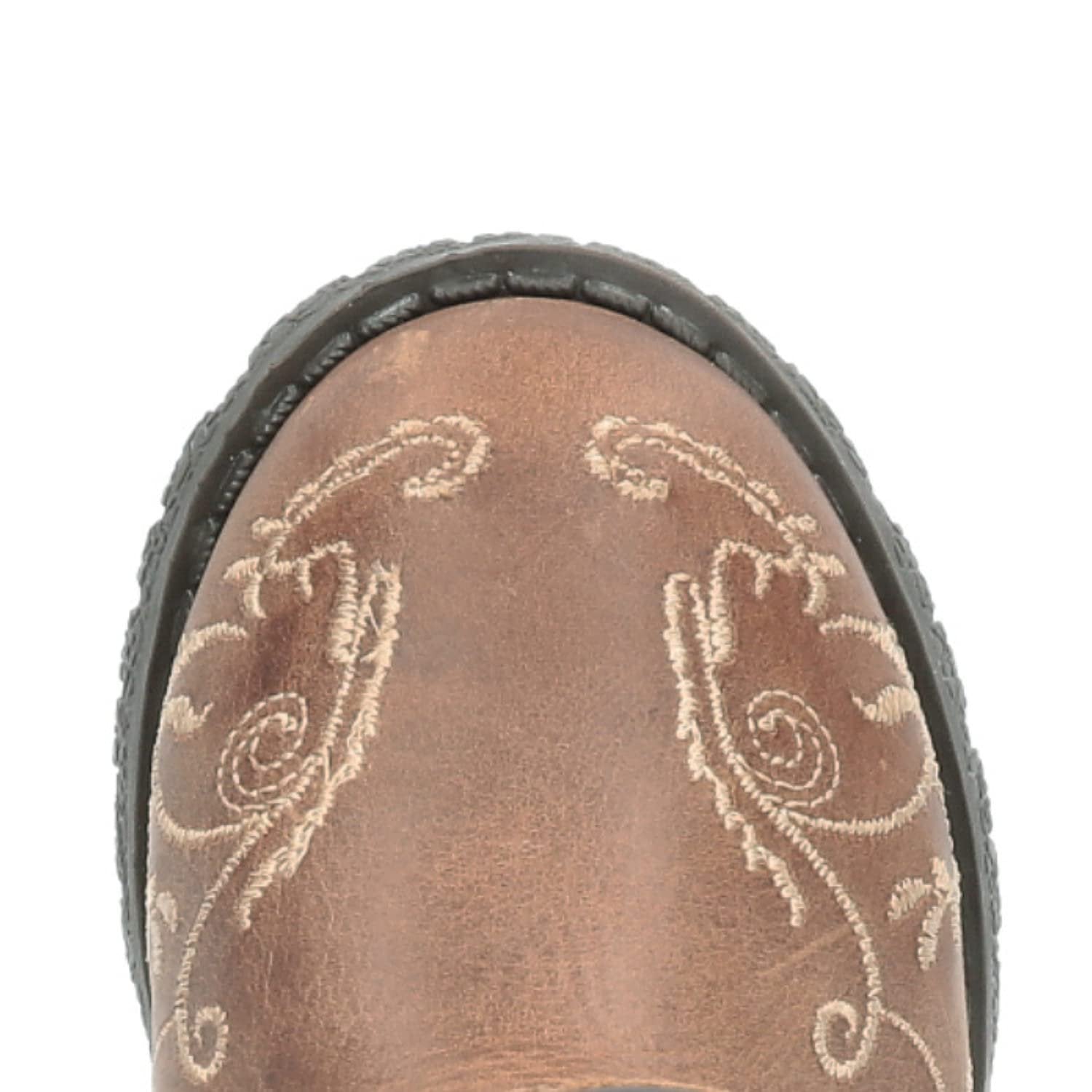 Smoky Mountain Toddler Hopalong Brown Boots 6TLeather-and-syntheticLow heelRubber soleLeather LiningSolid Brown With Filigree Embroidery Throughout