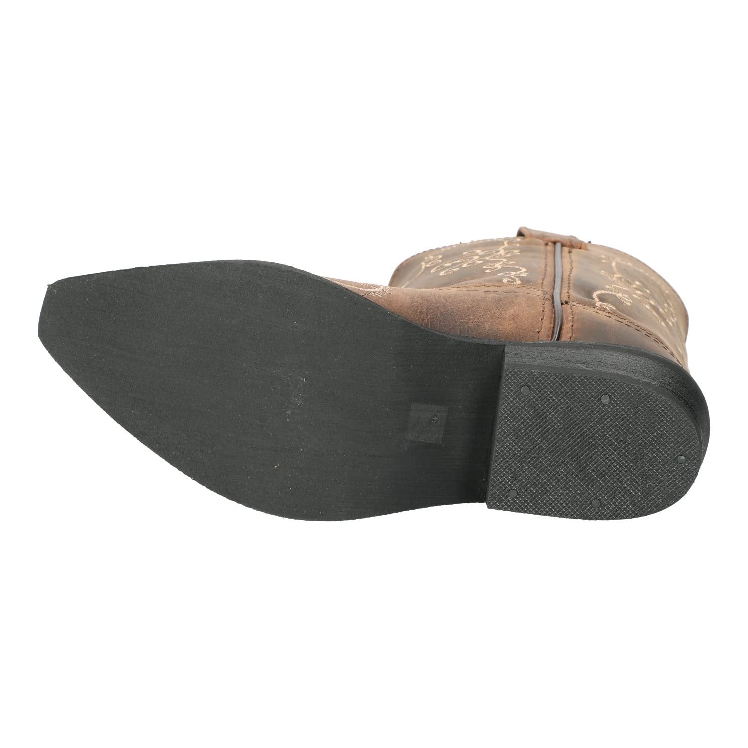 Smoky Mountain Boots Jolene series are pull on children’s western boots that feature a snip toe with a western heel. Perfect for your special little cowgirl. Kids will enjoy playing while wearing these boots made of genuine leather. Let your little one’s experience comfort as they take on amazing adventures. The boots include a rubber sole, a comfortable western heel, tricot lining and vintage leather color. This stylish footwear is available in various sizes. Smoky Mountain Boots is a Family-owned and operated Boot Company that has provided durable boots at an affordable price since 1992. We have a large selection of boots for Men, Women and children.Medium Width Fit – Accommodates growing feet for a secure yet flexible feel, ideal for everyday wear or special events.