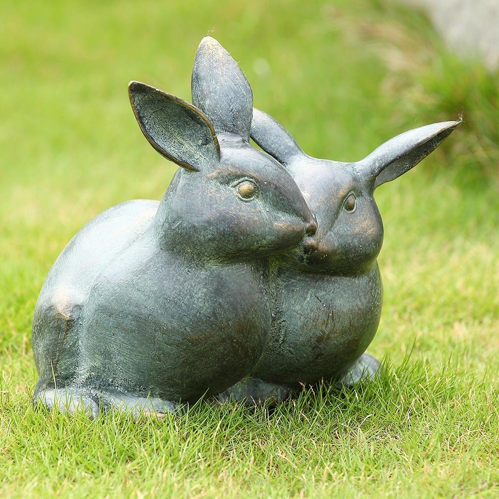 Two aluminum bunnies snuggle and hide your key!Measures 8.5 Inches High, 9 Inches Wide, 8 Inches DeepMade of AluminumBeautiful PatinaMakes a Great Gift