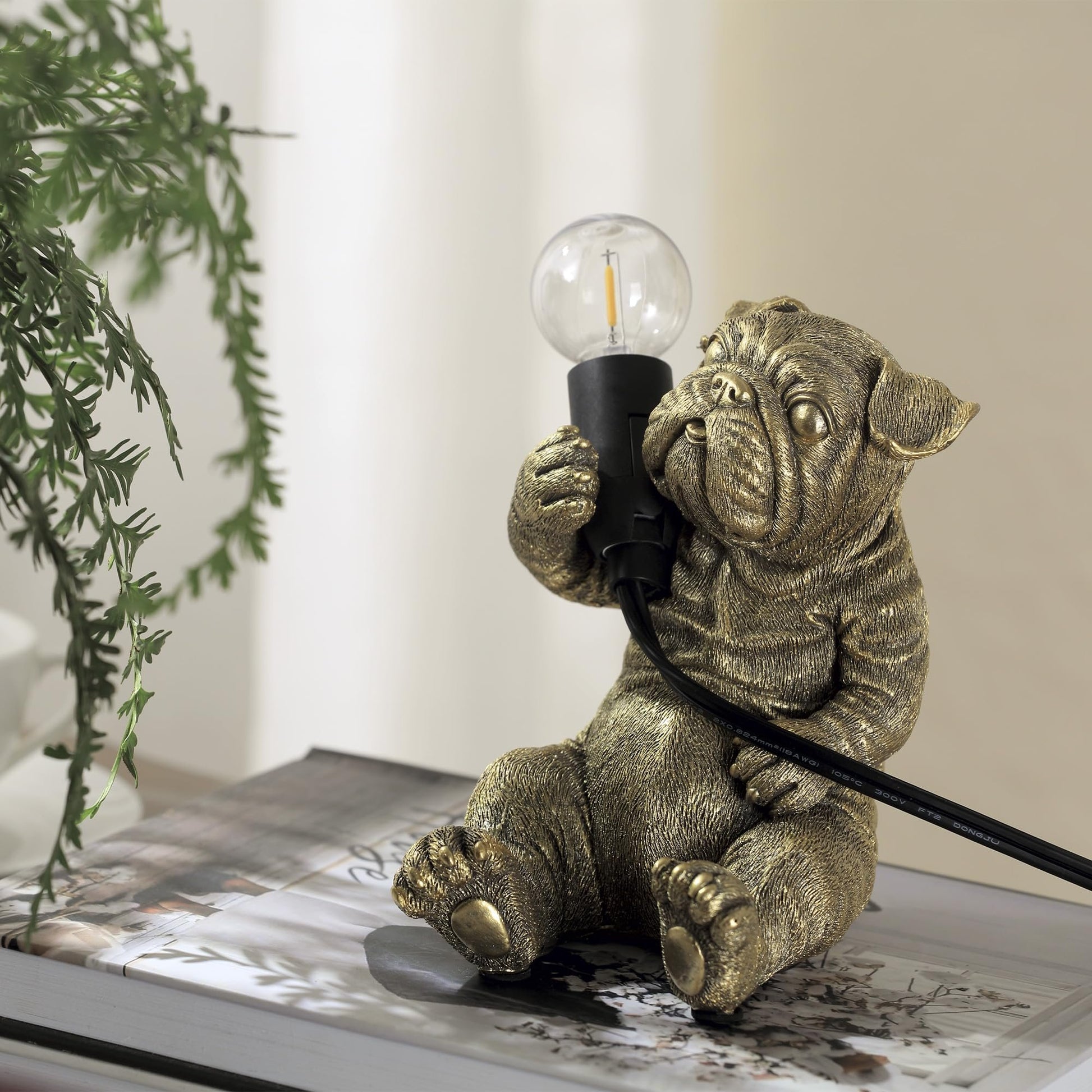 This charming bulldog accent lamp is a delightful addition to any room, instantly capturing attention with its whimsical design. Standing at 6 inches tall, this little guy is a great conversation starter, especially if you hail from Georgia. Crafted with meticulous detail, the lamp's resin body showcases the bulldog's distinctive features and playful expression. With its UL-approved construction, you can enjoy this lamp with peace of mind. Please note that a bulb (E14 base) is not included, allowing you to choose the perfect lighting to complement your space. Whether as a decorative piece or a functional lamp, this bulldog accent lamp is sure to bring a touch of charm and personality to your decor.Whimsical Design: This charming bulldog accent lamp features a lifelike sculpted figure holding a light bulb, adding a playful touch to any room.Durable Construction: Crafted from high-quality materials, this lamp boasts long-lasting durability and a solid base for stability.Versatile Lighting: Compatible with an E14 base bulb (not included), allowing you to customize the lighting to suit your preferences.Compact Size: Measuring 6 inches tall, this compact lamp fits seamlessly on desks, shelves, or side tables without occupying too much space.Conversation Starter: With its unique and eye-catching design, this lamp is sure to spark conversations and become a focal point in your living space.