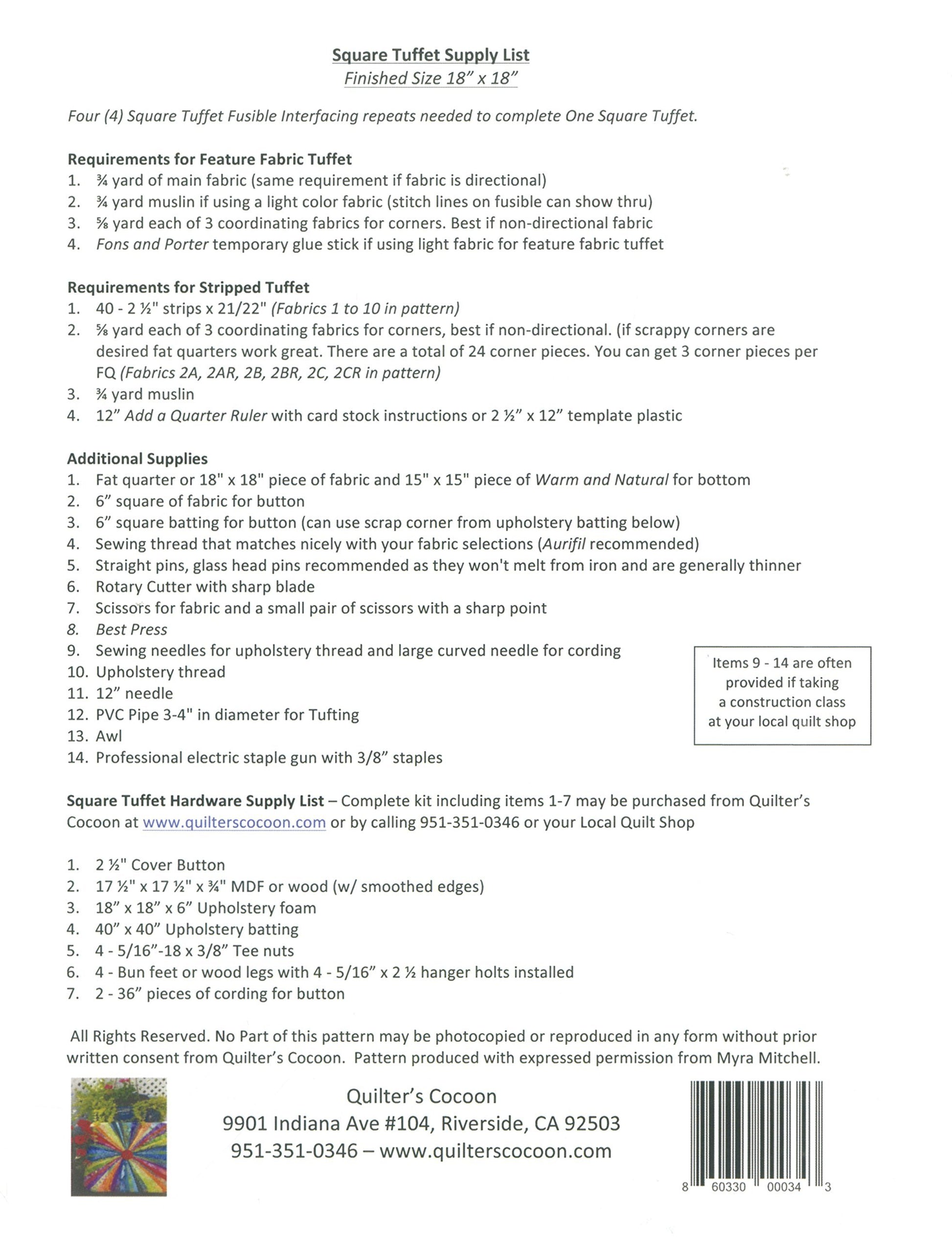 Square Tuffet Pattern with Fusible Interfacing