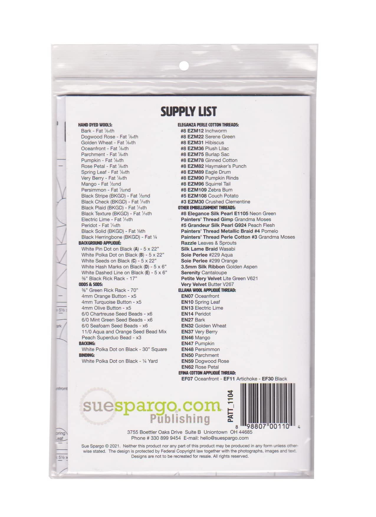Squash Squad Wall Quilt Pattern by Sue Spargo - Wool Applique Project (Finished Size is 23.5" x 23.5")