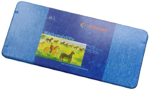 Stockmar Beeswax Stick Crayons, Set of 16NON TOXIC BEEWAX CRAYONS: These Stockmar crayons are the perfect blend of beeswax, food-grade wax, and pigments ensuring they are non-toxic, safe crayons for toddlers and kids little hands. Free of common allergens.EASY TO HOLD & UNBREAKABLE CRAYONS: These jumbo crayons are easy to hold for small hands making them the best beeswax crayons for toddlers and kids who are still developing their pencil grip. Their formula is designed to be durable and unbreakable!ARTIST QUALITY & VIBRANT COLORS: These wax sticks for kids have a pleasant beeswax scent and outstanding drawing properties. The vibrant crayons rich color pigments layer beautifully without rubbing off on hands. Stockmar crayons provide years of artistic pleasure elevating what you expect from crayons for kids.HANDMADE IN GERMANY & RESPONSIBLY SOURCED: Stockmar crayons have been handcrafted in Germany for over 50 years and trusted by Waldorf schools around the world. Stockmar is committed to responsible sourcing, to ensure sustainability of beehives16 VIBRANT COLORS: Vivid & brilliant colors blend together beautifully in a sliding cardboard storage box with scraper.COLORS INCLUDED IN 16 SET: 01 carmine red | 02 vermilion | 03 orange | 04 golden yellow | 05 lemon yellow | 06 yellow green | 07 green | 08 blue green | 09 blue | 10 ultramarine | 11 blue violet | 12 red violet | 13 rust | 14 yellow brown | 15 black | 16 whiteTin case, 16 crayons, size of each crayon: 3.27 inch, diam. 0.47 inch (length: 83 mm, diam. 12 mm), with scraper