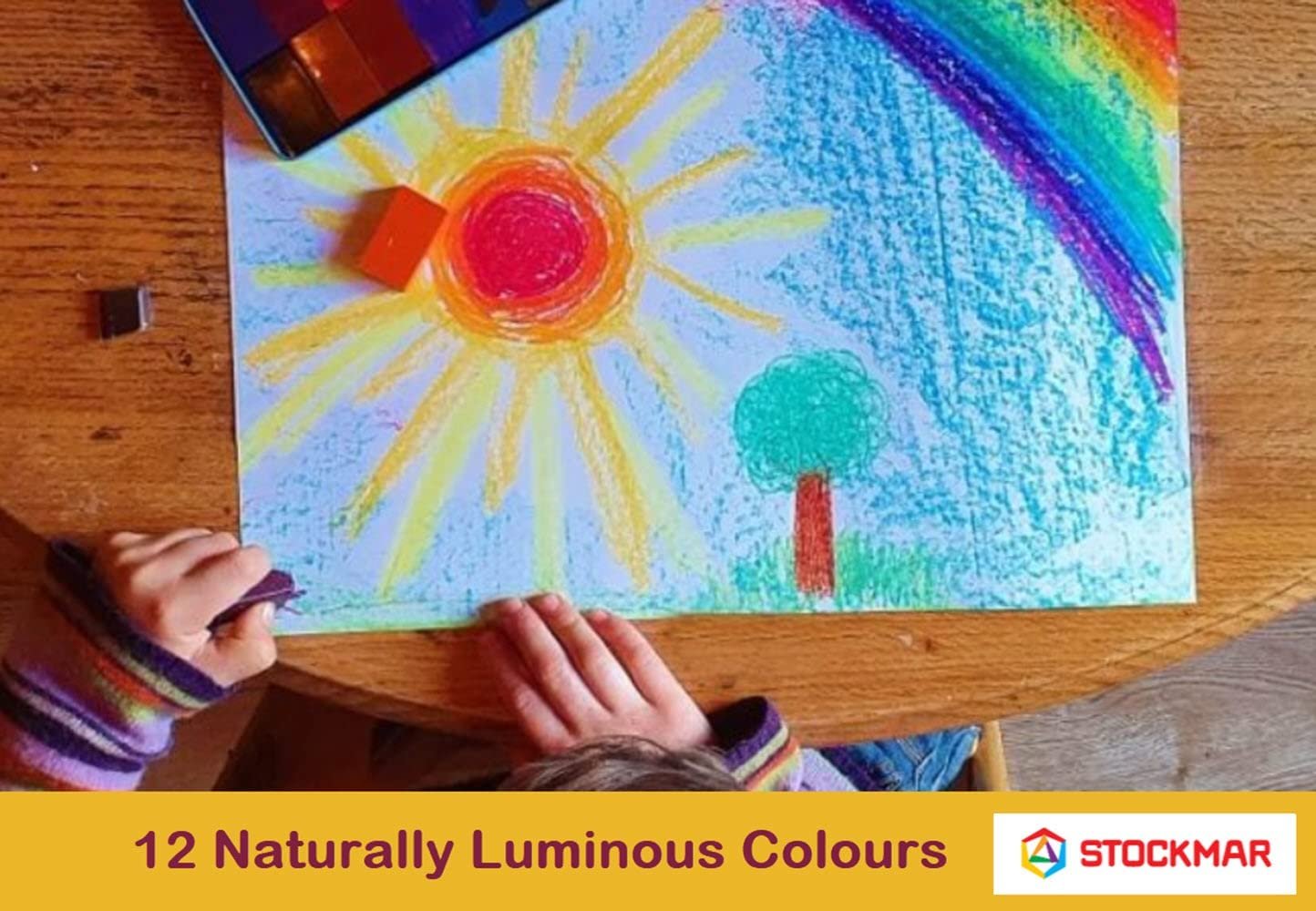 Stockmar Wax Block Crayons meet the highest educational, aesthetic and artistic demands. Experience color in a unique way - one of their characteristic features is that they can be used both powerfully and transparently. Because of the pleasant smell of beeswax, they stimulate the child's senses during coloring. Whether drawing, painting, generously applying, layering, scraping, and melting colors, Stockmar Block Wax Crayons promise years of pure drawing and coloring pleasure. Outstanding drawing properties (no crumbling, sticking, smudging etc) while adhering to European standards of safety and quality. NOT overly creamy or too soft like other beeswax crayons. They fit well in the hand and are specially suited for small children. Children can draw colorful areas easily, and arrive at interesting effects. AP certified non-toxic. Internationally recognized for quality and safety for over 80 years. No synthetic pigments. No: soy, egg, wheat, nuts, dairy, GMOs The Stockmar crayon colors coordinatore nicely with the other Stockmar art products: watercolors, stick crayons, color pencils, opaque watercolors, decorating wax and modelling beeswax. Try the crayon that has been a must in classrooms for decades. Cardboard box, 12 blocks each 1.61 x 0.91 x 0.47 inches (41x23x12 mm), 12 assorted colors Colors: carmine red, vermilion, orange, lemon yellow, yellow green, green, blue, ultramarine , red violet, rust, black, whitecardboard box12 blocks each 1.61x0.91x0.47 inch12 colors assorted